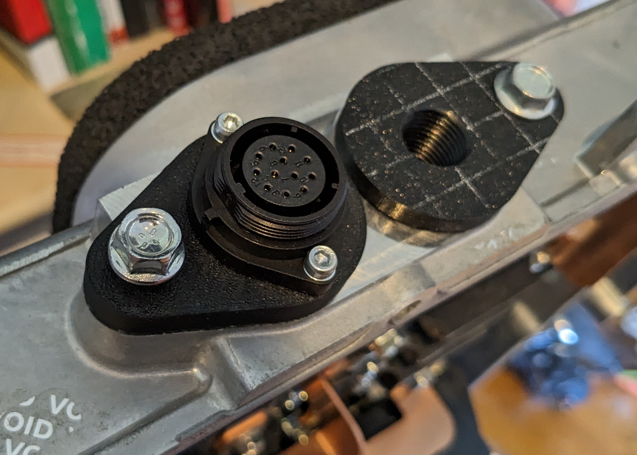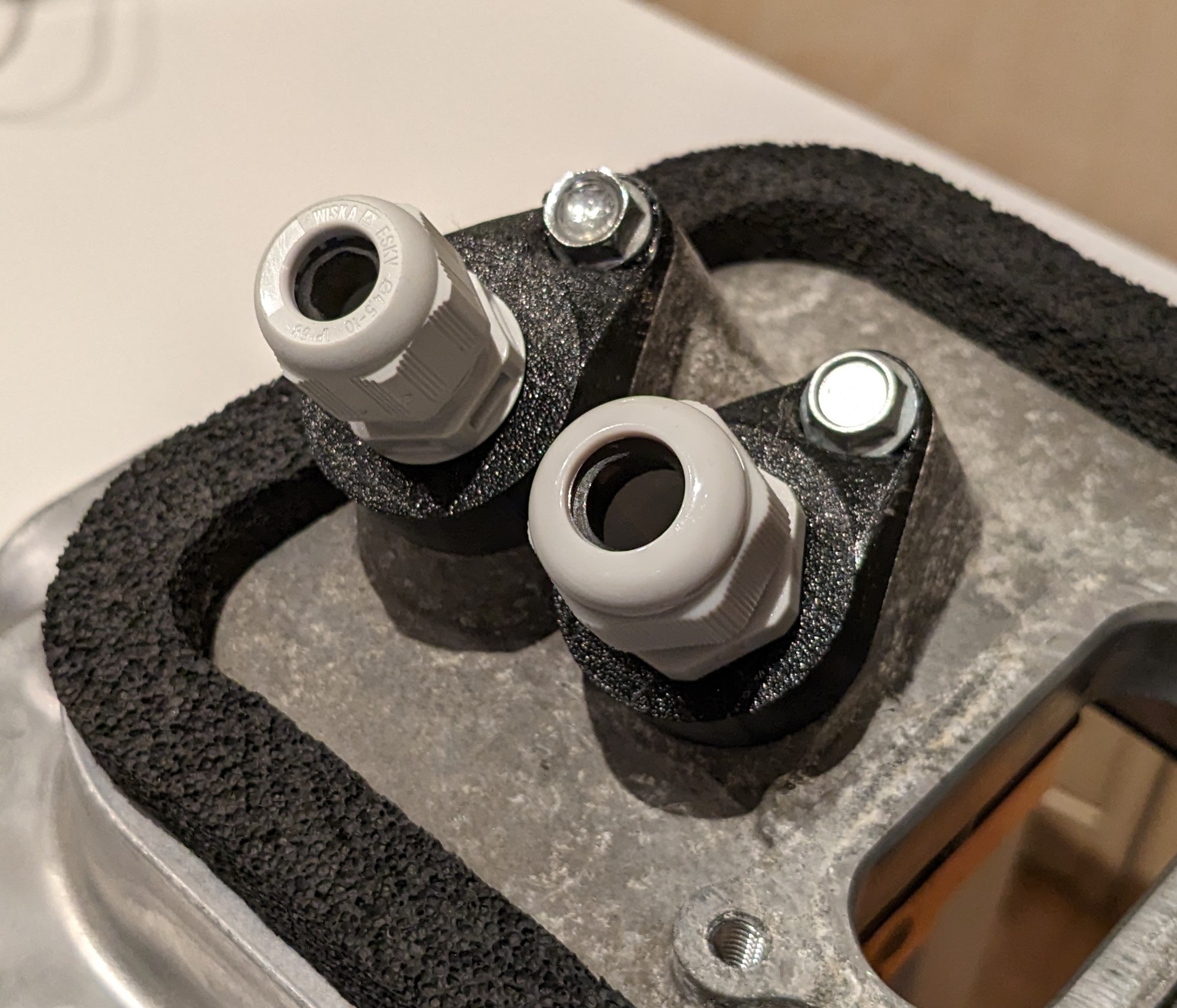 This gland uses three M25x1.5 glands for the thicc phase cables which run to the motor. Since the space for this plug on the motor is limited, there is an M20 version as well which has a shallower profile: