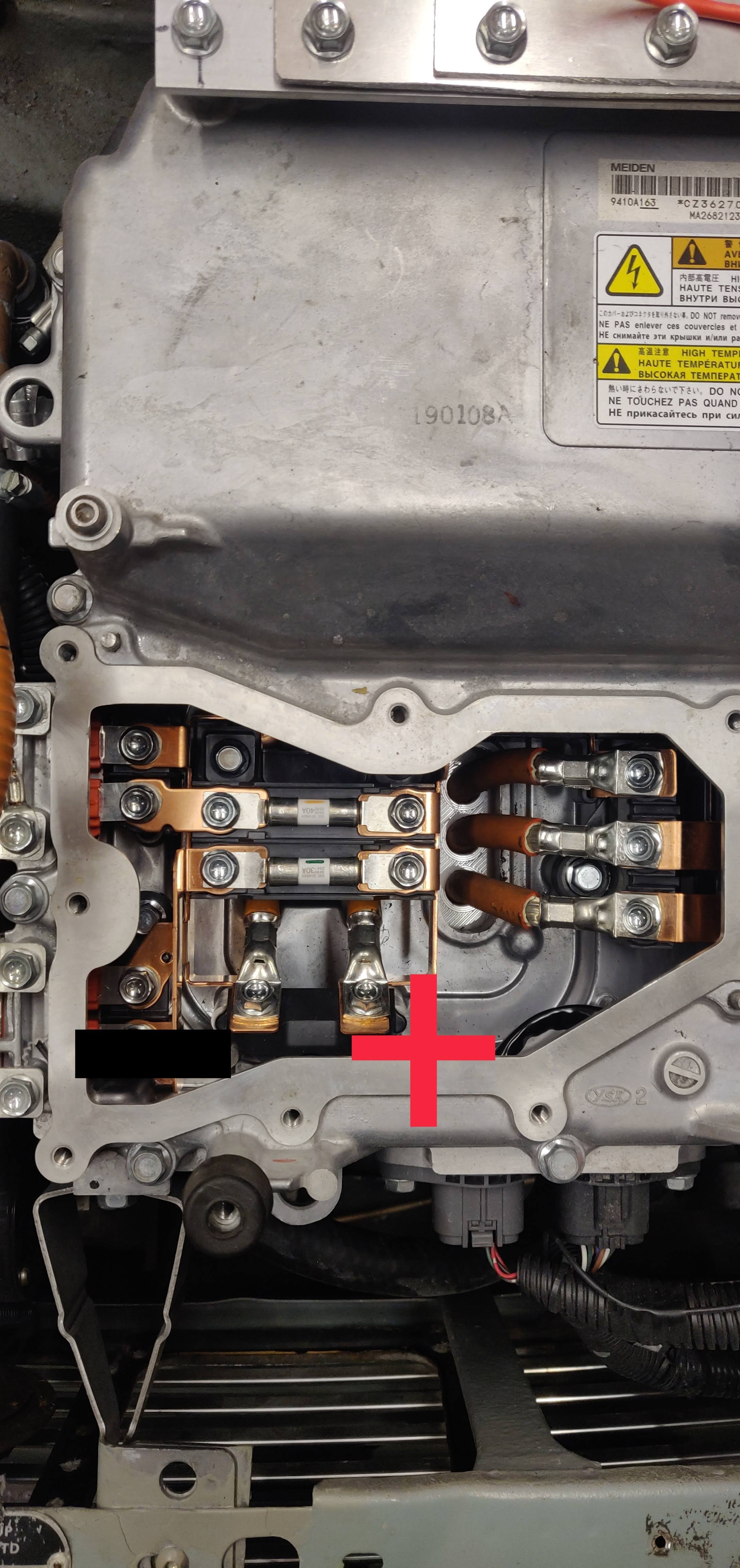 can someone post a photo of the HV battery + and - screw terminals polarity ,please