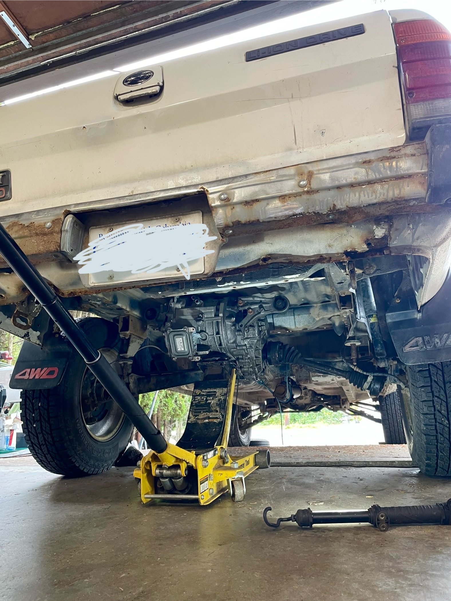 This way I can swap in and out the outlander and subie rear diff easily. Can also just drive in fwd with no rear end. So I can still pickup supplies