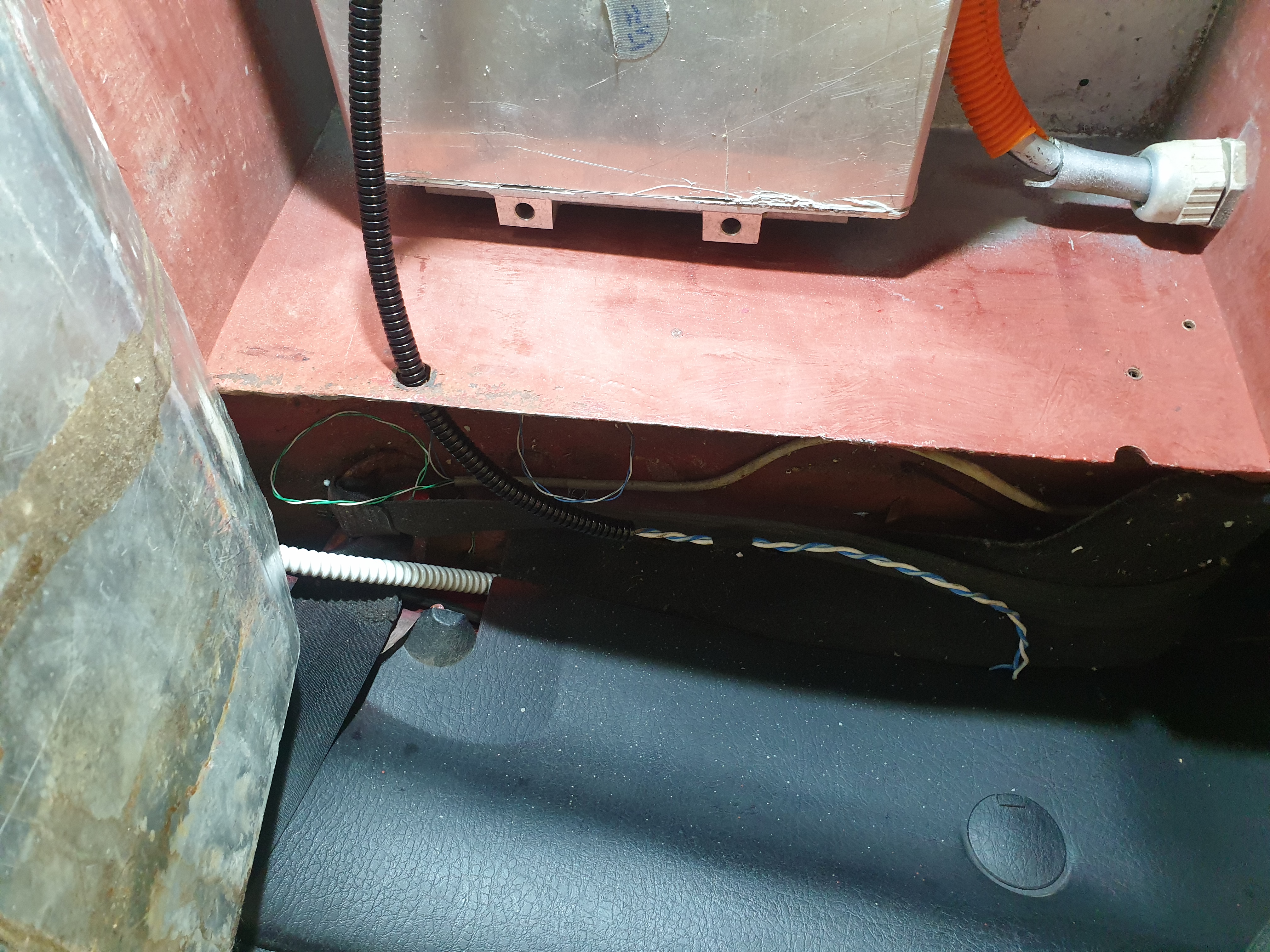 Furthermost + cable exit from the box and under the rear seats into the box that is under the seats. I cut a hole into the alu cover which will house battery service disconnect. If i would need to service the HV system i simply remove the top part of disconnect and i can safely work on the HV system.