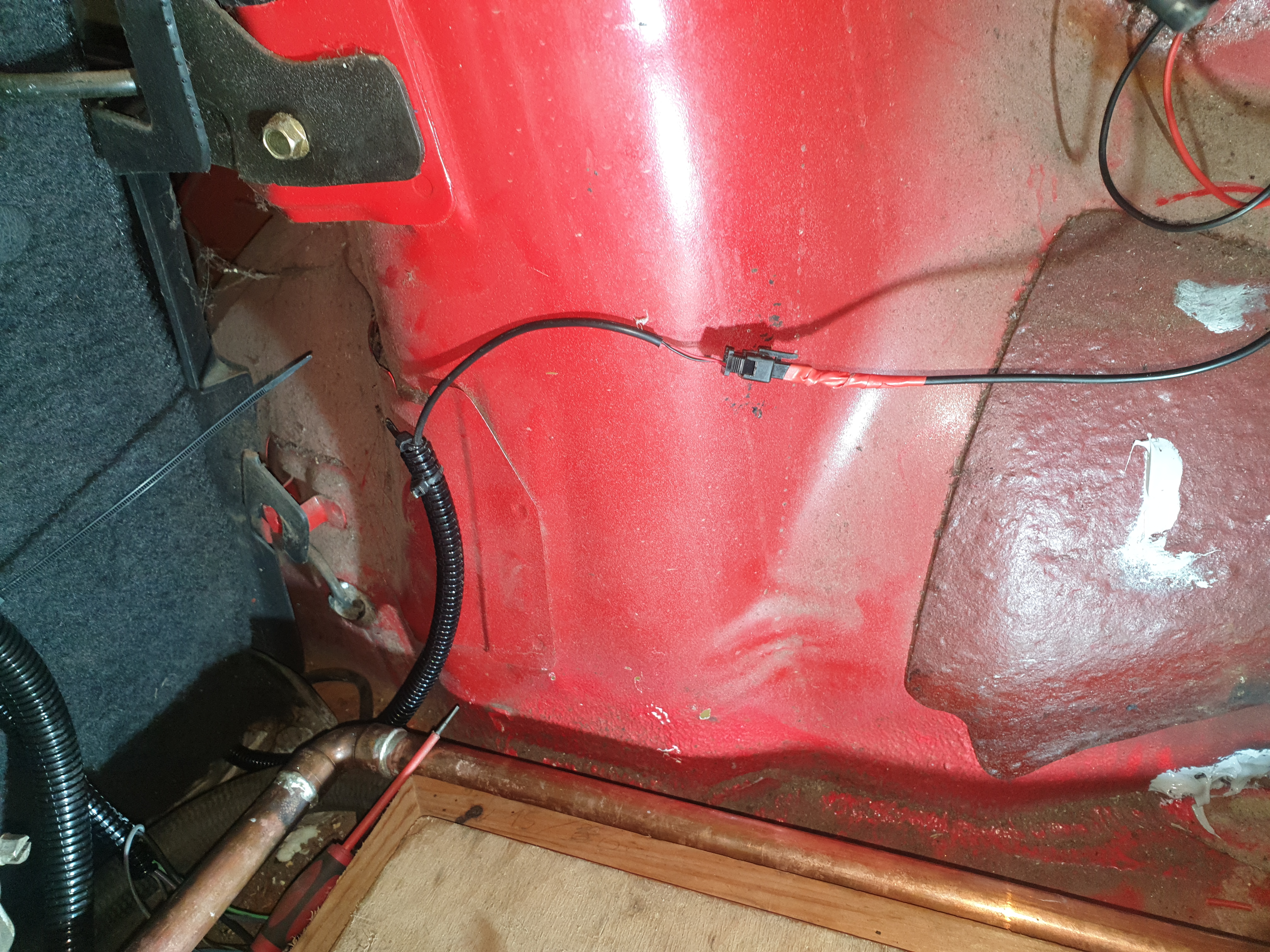 This last module will live under the rear seats. I cut an underside plate from 5mm Alu which will help fix the module in place and dissipate the heat.