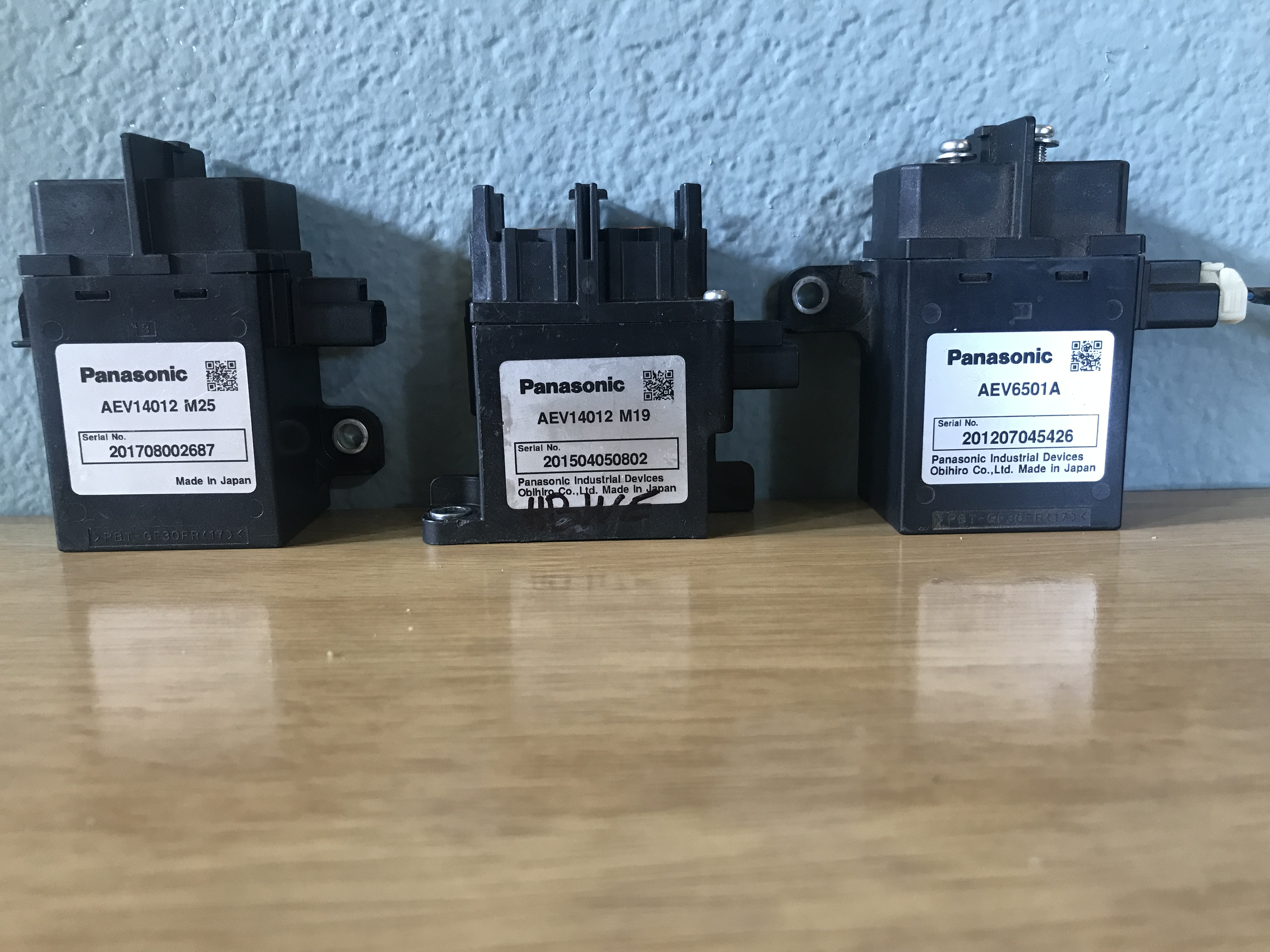 I recently scored some used contactors on eBay for $38 dollars each which were listed as Panasonic AEV6501A 500VDC 200A Contact Relay (From 2013 Nissan Leaf) however they fit into our BMW Safety Box perfectly and have more better specs