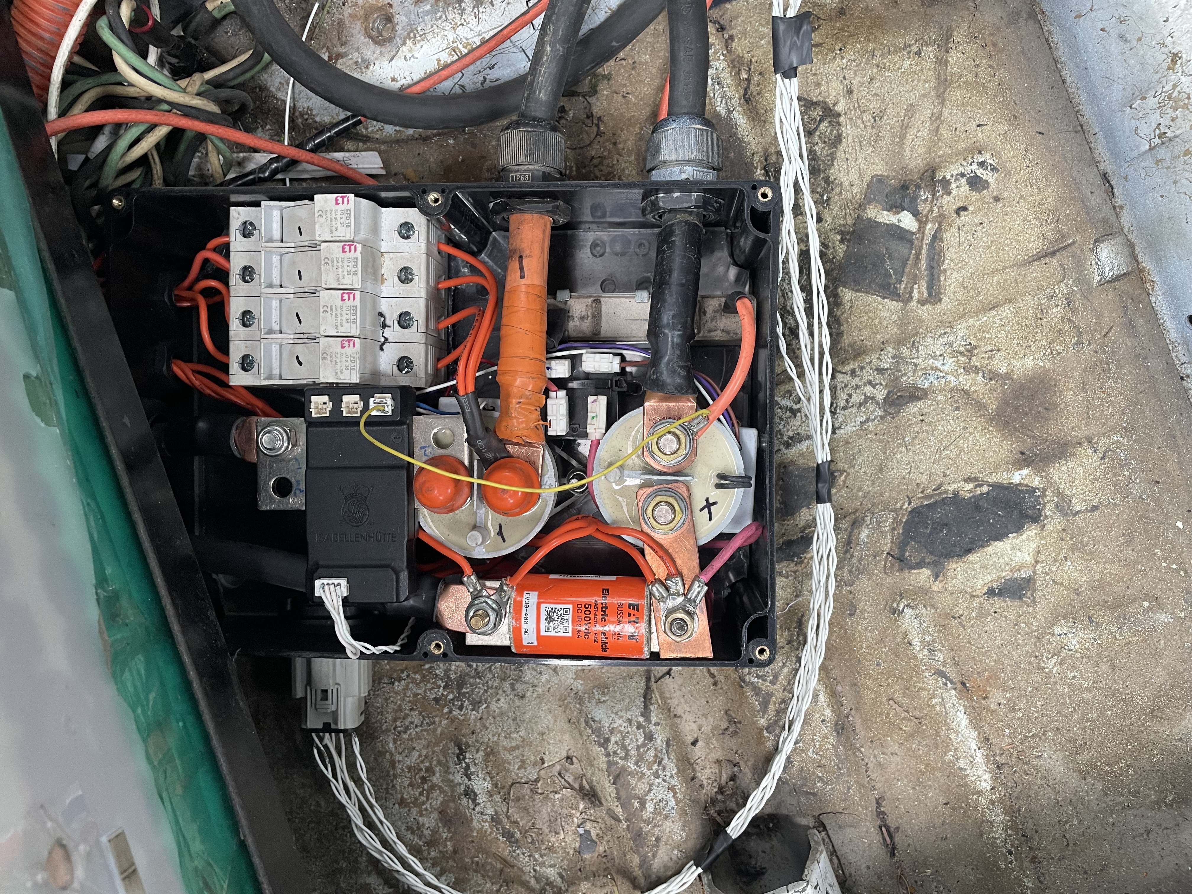 start everything back up....and precharge fail....hmm okay not getting proper reading in the web interface. opened up the contactor box, the shunt on the negative contactor terminal is a little loose. yikes.