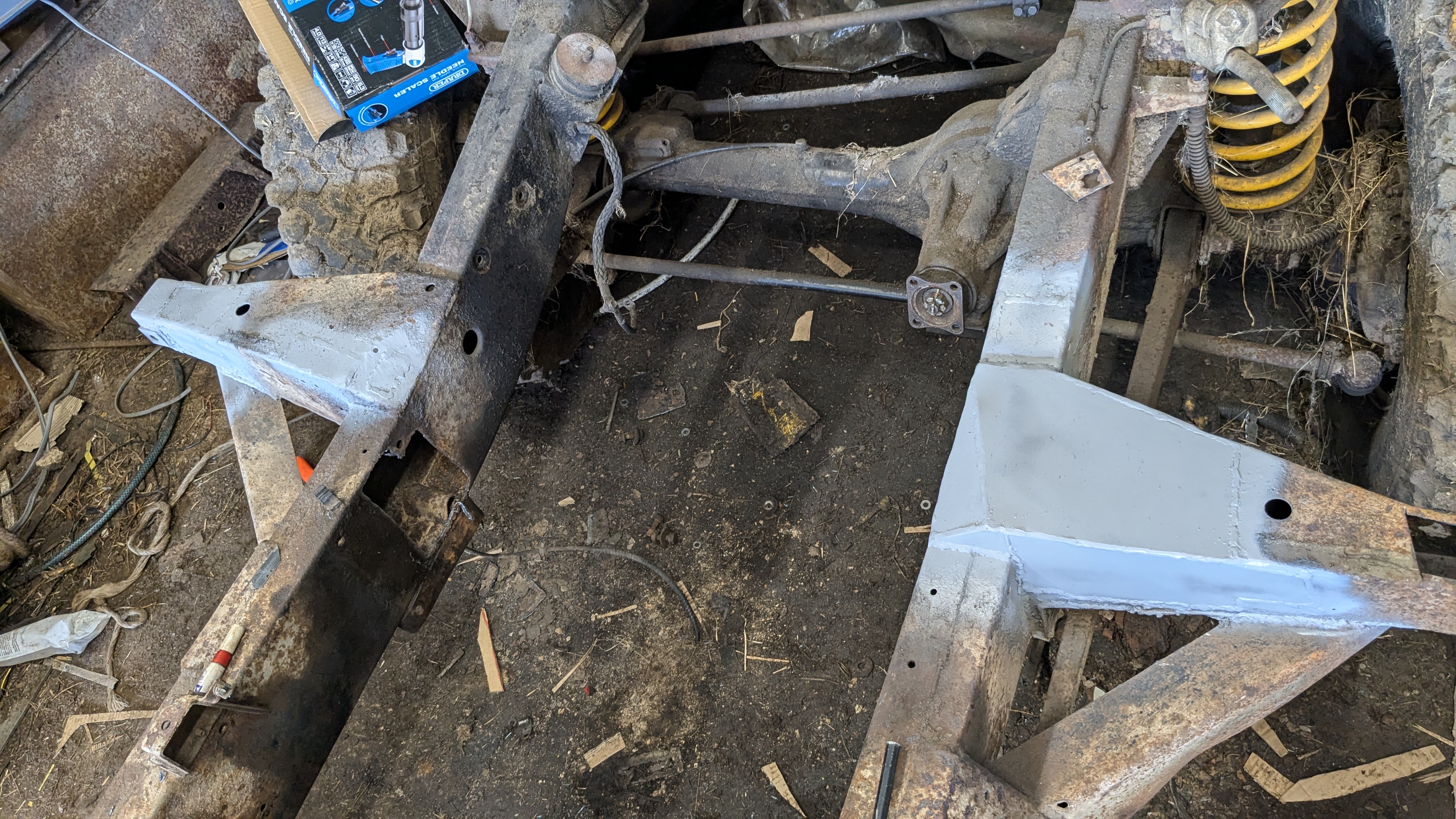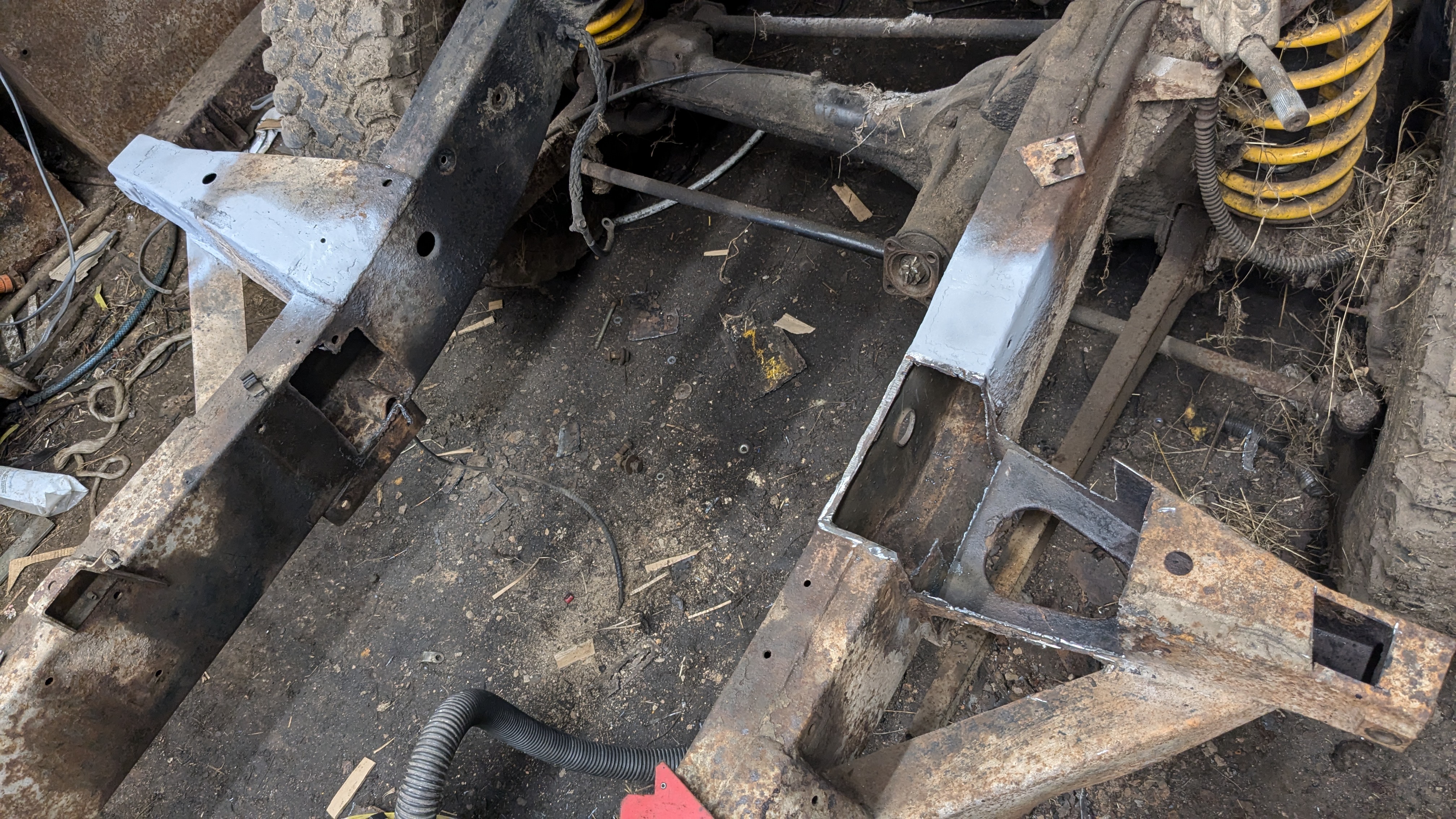 Lots of welding done this month. Rebuilt the bulkhead outriggers, replaced the rear body outriggers, a few more patches done.