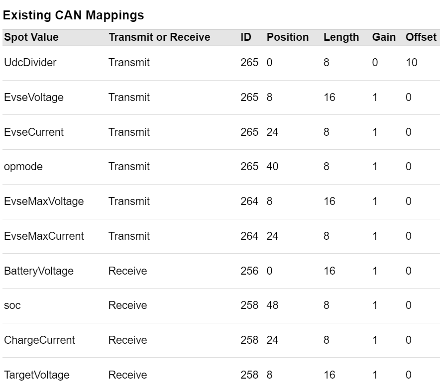 No charging yet, but progress! When I connected with the PhiPhong Charger, I got up to Opmode 10. The station successfully read the SOC and I was able to see an EVSE Max Voltage and EVSE Max Current value on CAN. Contactors did not close though and the charger went into fault mode. I have attached a log file from the session.