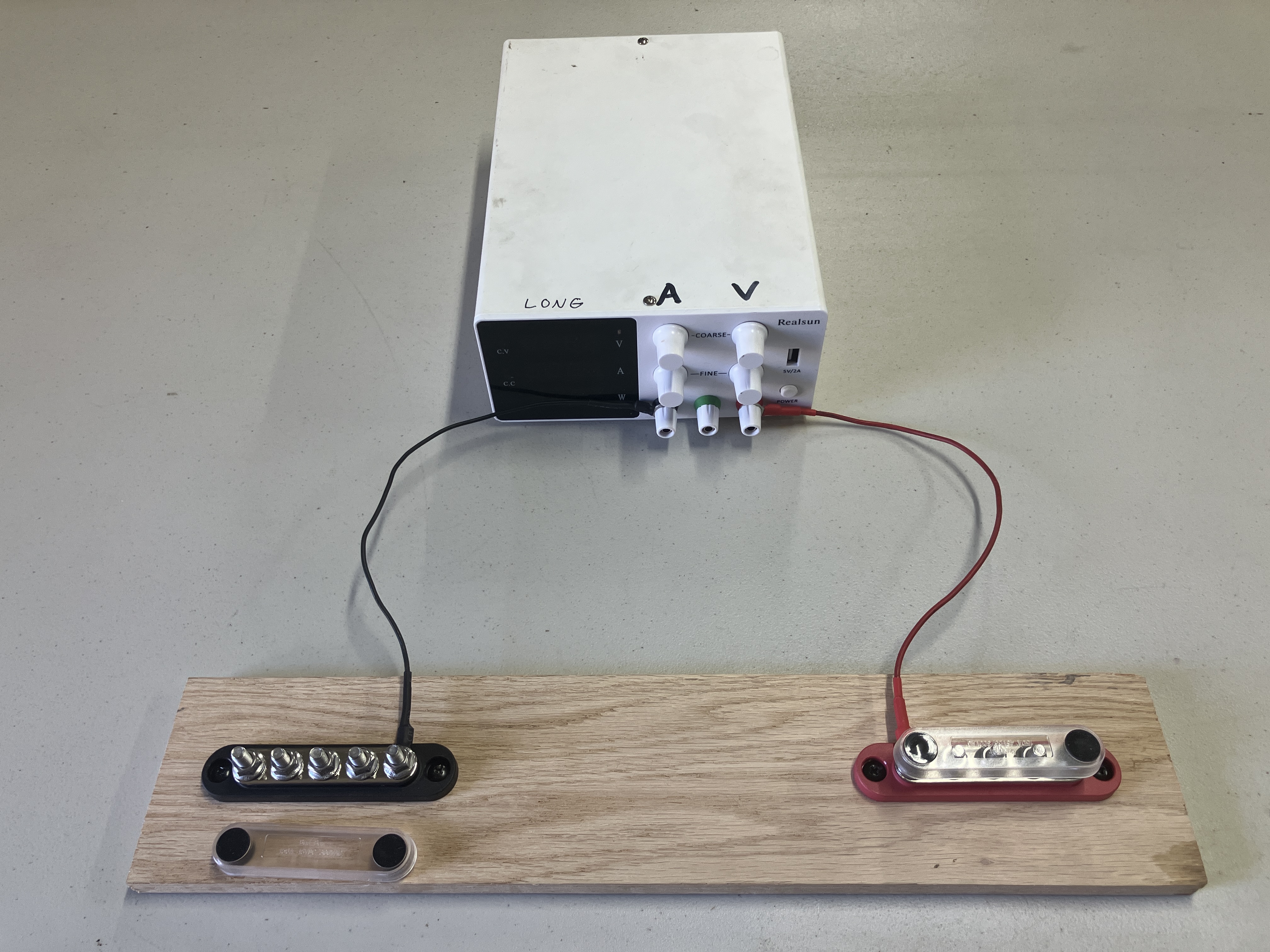 below the bench power supply on the right is simulating the High Voltage battery pack