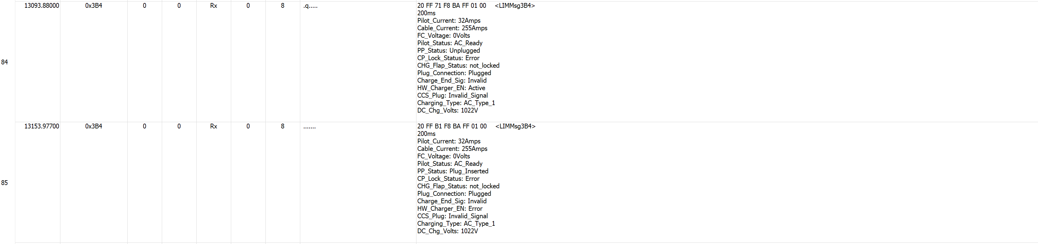 LIM however reads the wall charger info, pilot, gives a-ok to charge, which I use it to kick BMS to wake AC charger via CAN and the charger wakes up. Though I don't have HV connected to the charger yet, but the charger starts sending back healthy status messages and detects AC on input. Wall charger says the car is charging.