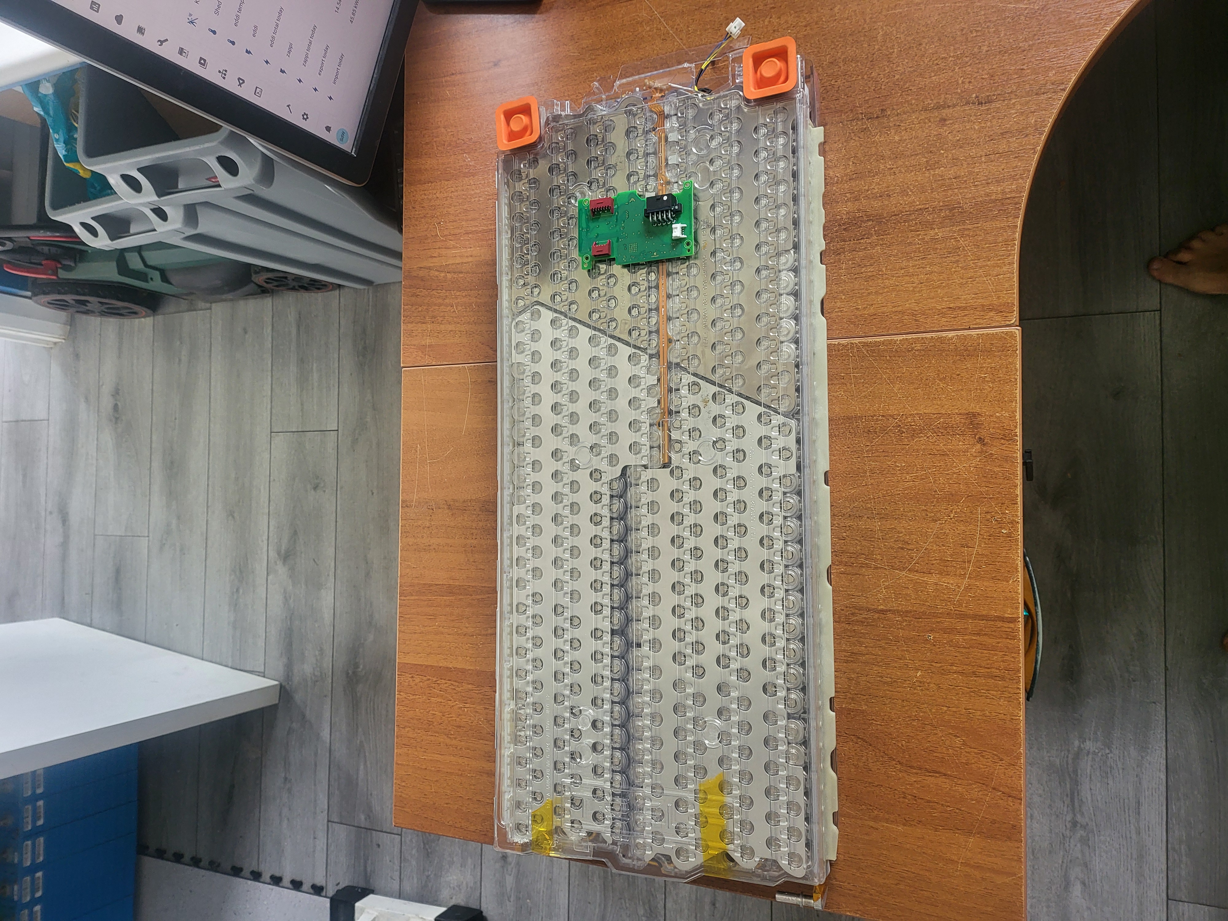 One battery module is perfect, the other I accidentally bent one corner of the conductor plate when pulling it out from under a pile of them, which then snapped about a dozen of the tiny fuse wires. All 444 cells are fine, but the cells with the broken fuse wires do not have contact with the conductor plate any more, so as is, the battery has its capacity reduced by about 20%. This pack was not charged or discharged since I did the damage