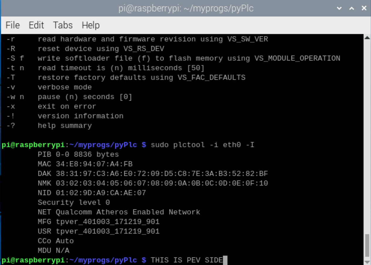 pi@raspberrypi:~/project/pyPlc $ sudo python pyPlc.py E