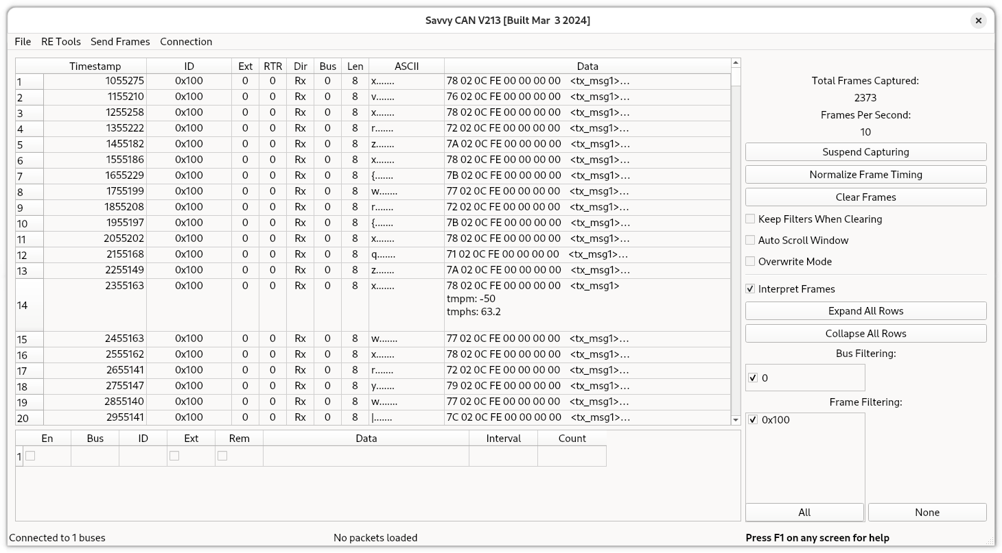 • CAN message maps can be exported to a DBC file for use with common tools like SavvyCAN