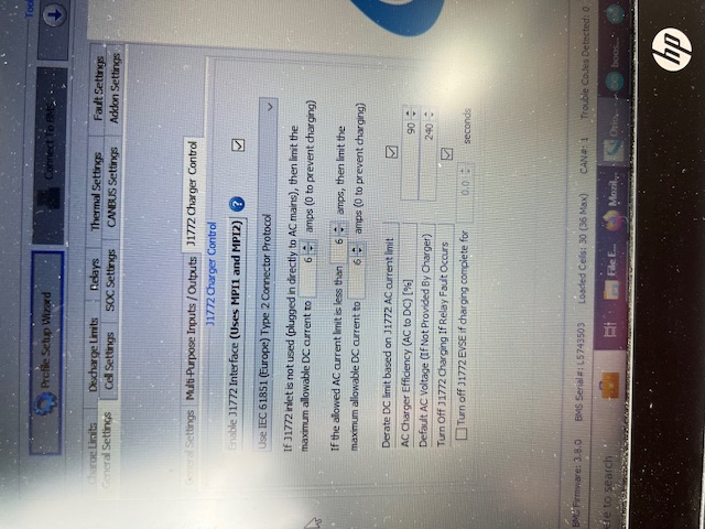 Secondly, my Orion is configured to use J1772 for type 2 charging. I want to keep this, and have a second charge port for CCS, hence the above. However as soon as I put the Orion into Charge mode by supplying 12V, it immediately reduces the CCL to 6A and reports 'CCL reduced due to J1772' (or similar) regardless of the x357 message. (The 6A is just the value set in the next screenshot - I could set it higher (say 100A), but I have a max DC current when charging of 60A for 6.6kW charging, and the Orion then takes that as absolute max value).