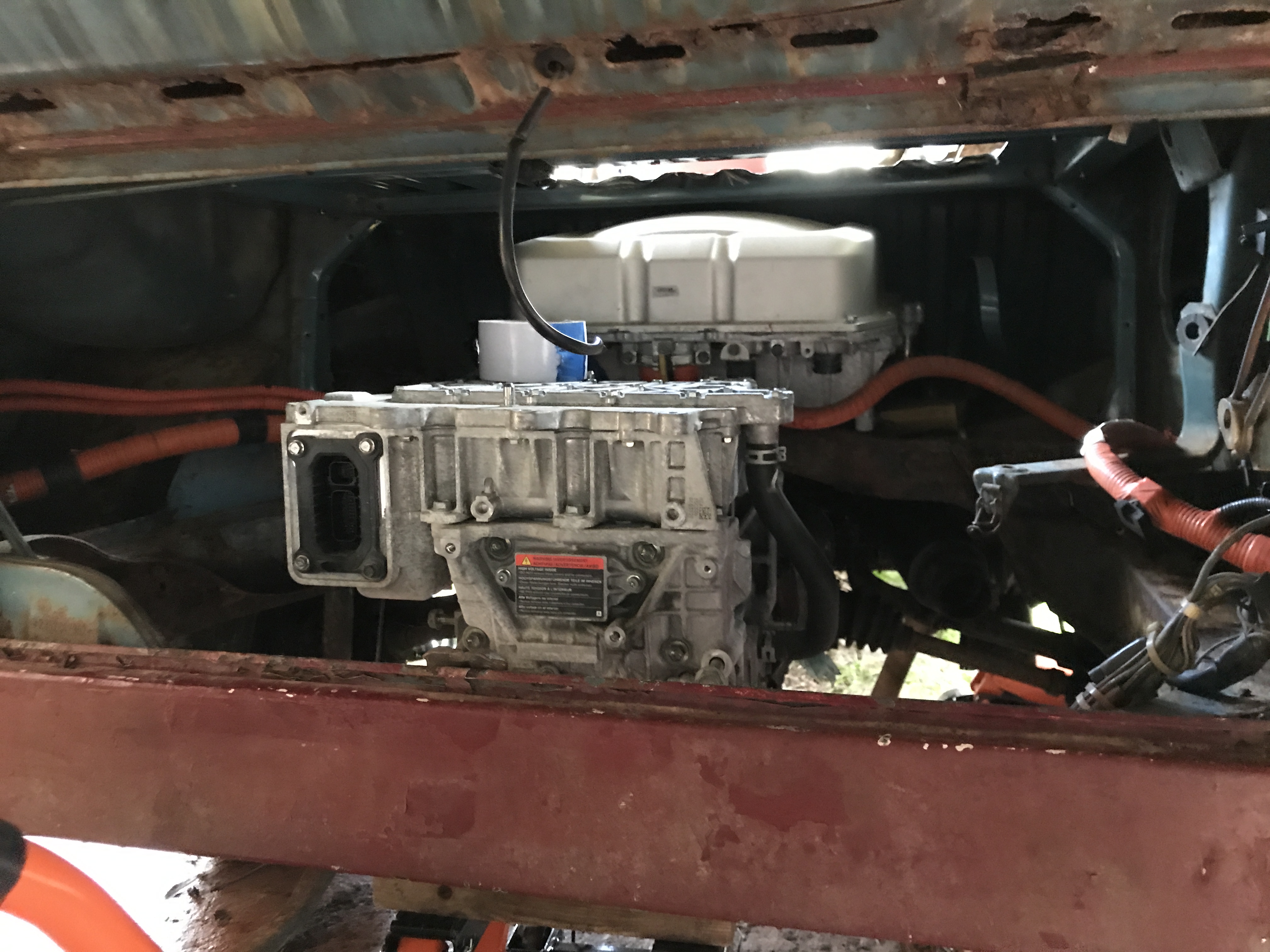 So next step will be to put the PDM in the passenger space with the original Leaf battery pack, just as a test, with the motor mounted to the transmission to see what other problems occur.