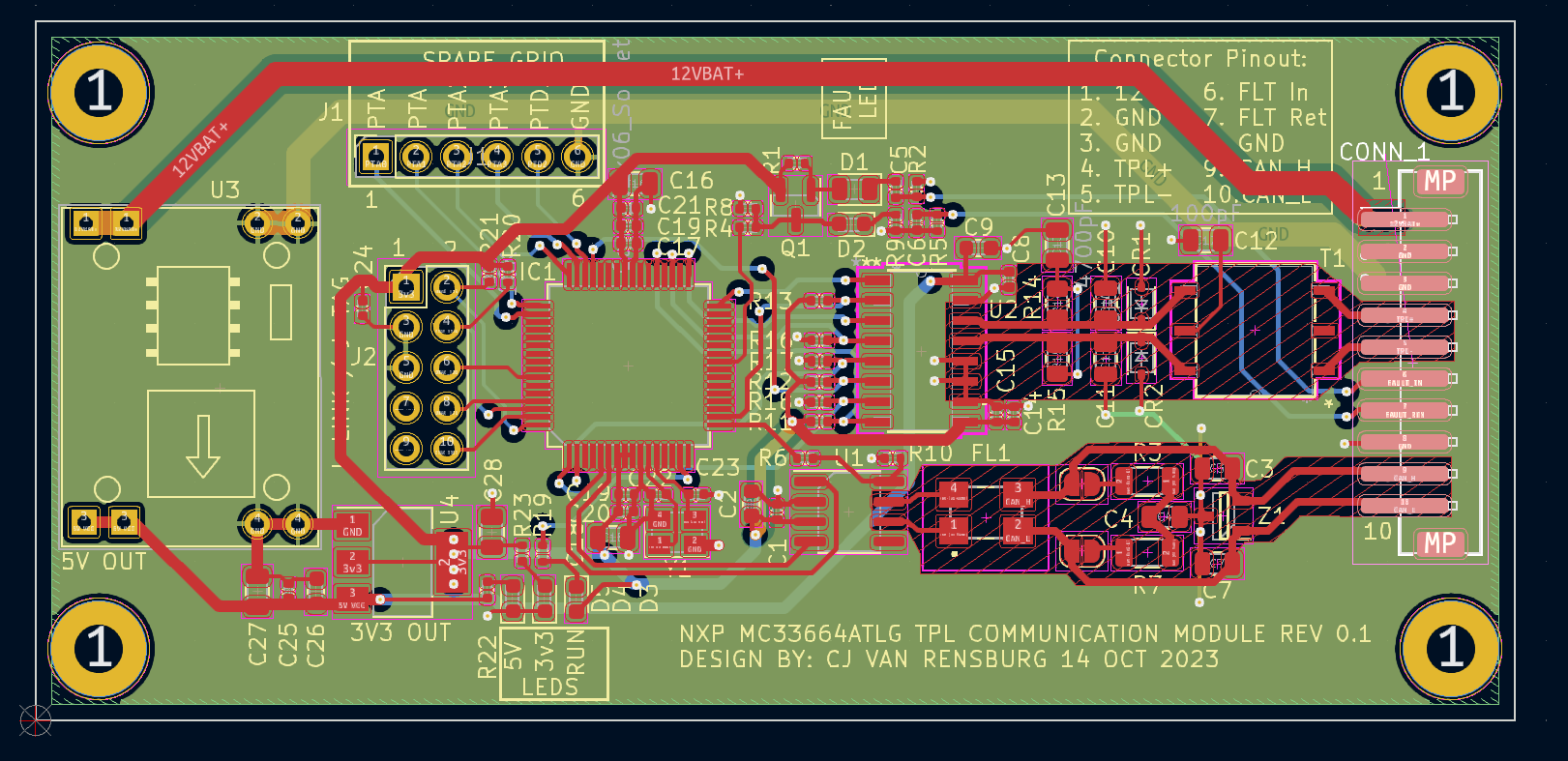 Anyone else who wants to roll their own, I had the PCB's made at JLCPCB, The only parts needed to buy from MOUSER is the S32K142 IC, NC33664 TPL IC , TPL Transformer HM2103NL and an aliexpress DC-DC Converter Module ( I was a bit lazy, should have designed a dcdc from components) And you would then have to solder those on.