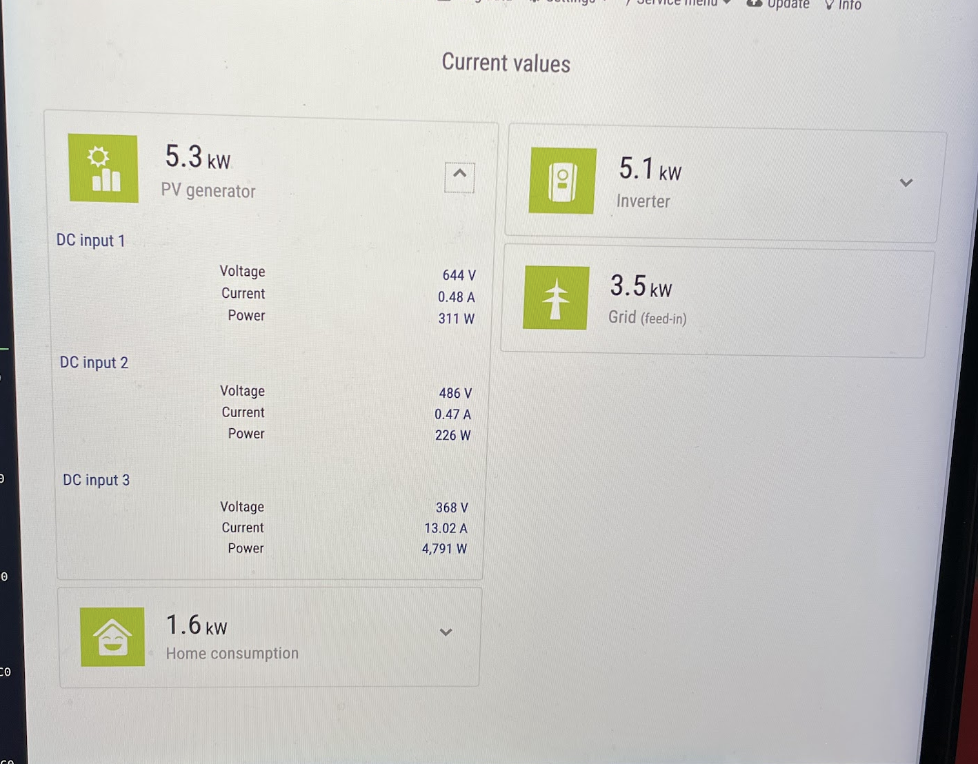 The next obstacle is my inverter (Kostal Plenticore Plus). The guys over the battery emulator discord have been very helpful, but I'm still not able to convince the inverter to start (dis)charge. Well, except for one accident: I disabled the battery setup in the Web UI of the inverter... and you must know that the battery inputs are the same as for a potential 3rd solar string. So the inverter happily considered the car battery as a solar string and started pulling with maximum current (13A).