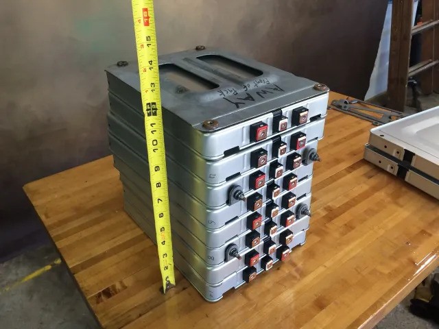 so I just had a random thought I want to share, each one of these BMW 67 volt modules is the equivalent of 8 Nissan Leaf sardine cans, voltage wise (I do realize the Leaf modules hold more energy) and to be fairer I am comparing the 2019 Leaf modules to the 2019 BMW modules, and not the older Leaf packs (despite of what you see in the pics below)