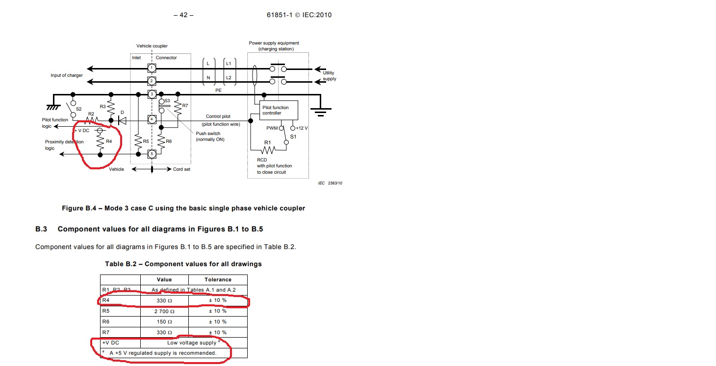 re:330 ohm resistor. Here is a screen shot of proximity circuit for CCS1 from IEC 61851-1 2010 standard. The value should be 330 +- 10%. From web address