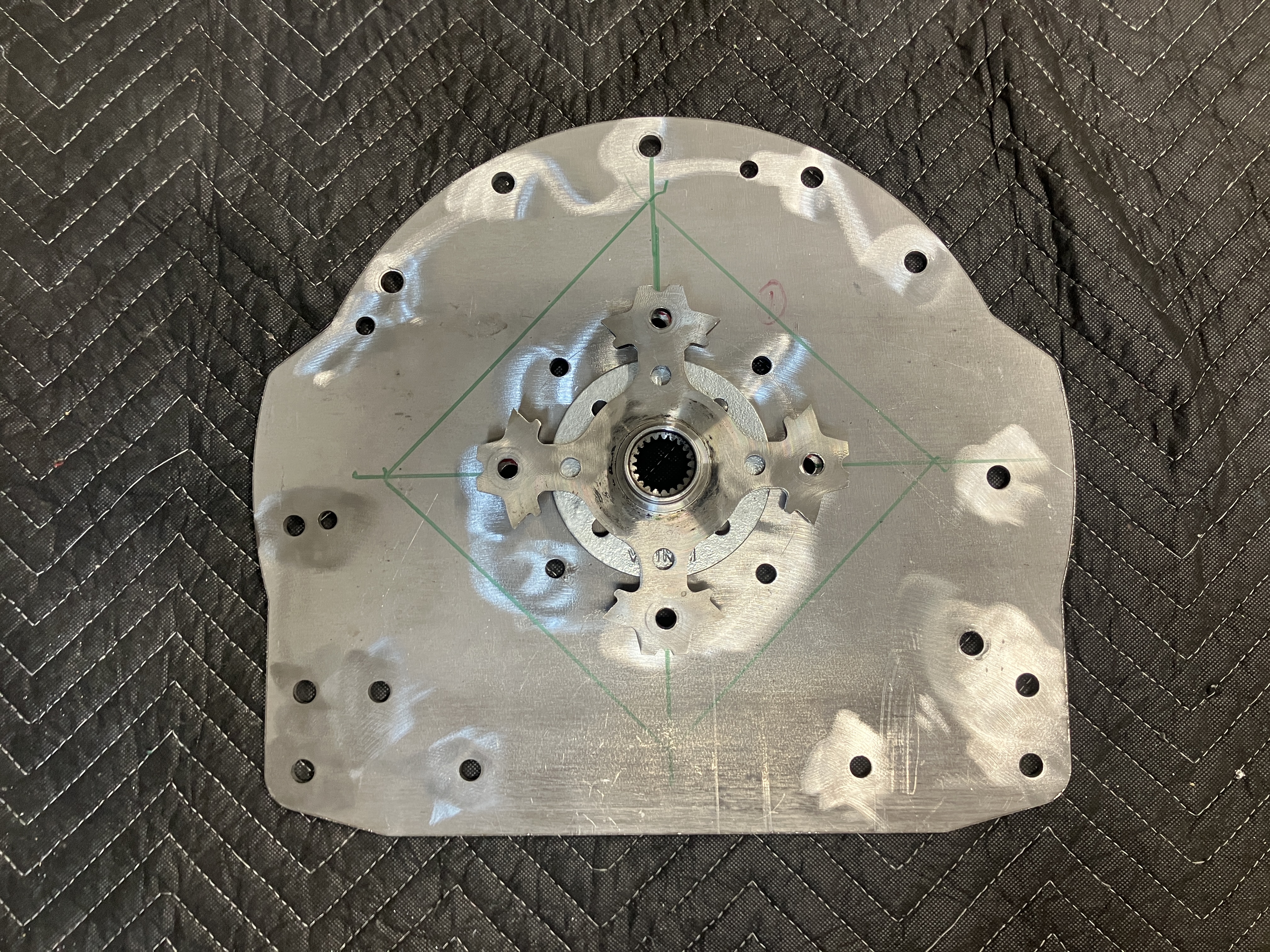 below I raised the Ninja star about 1/2 an inch off the plate to make it sit further inside the bell housing and on the input shaft, this was still just for testing purposes