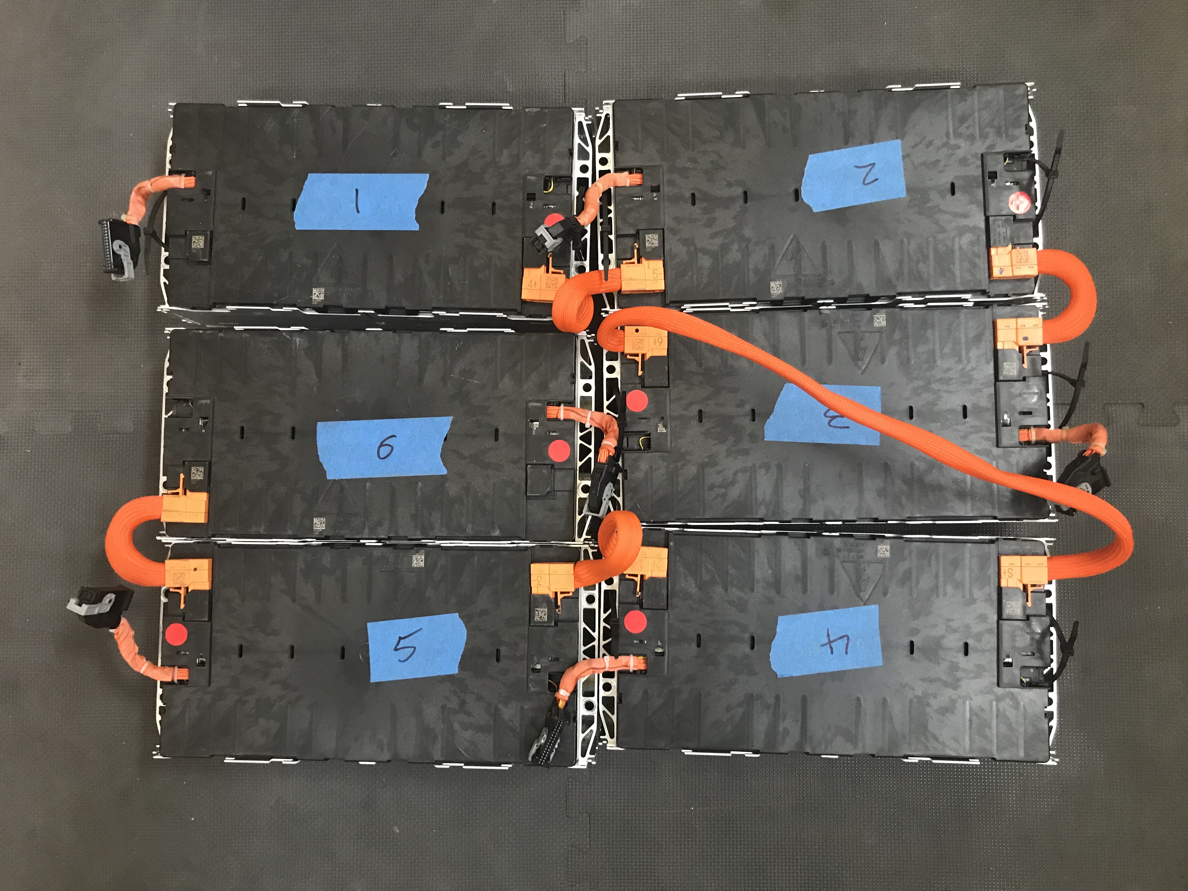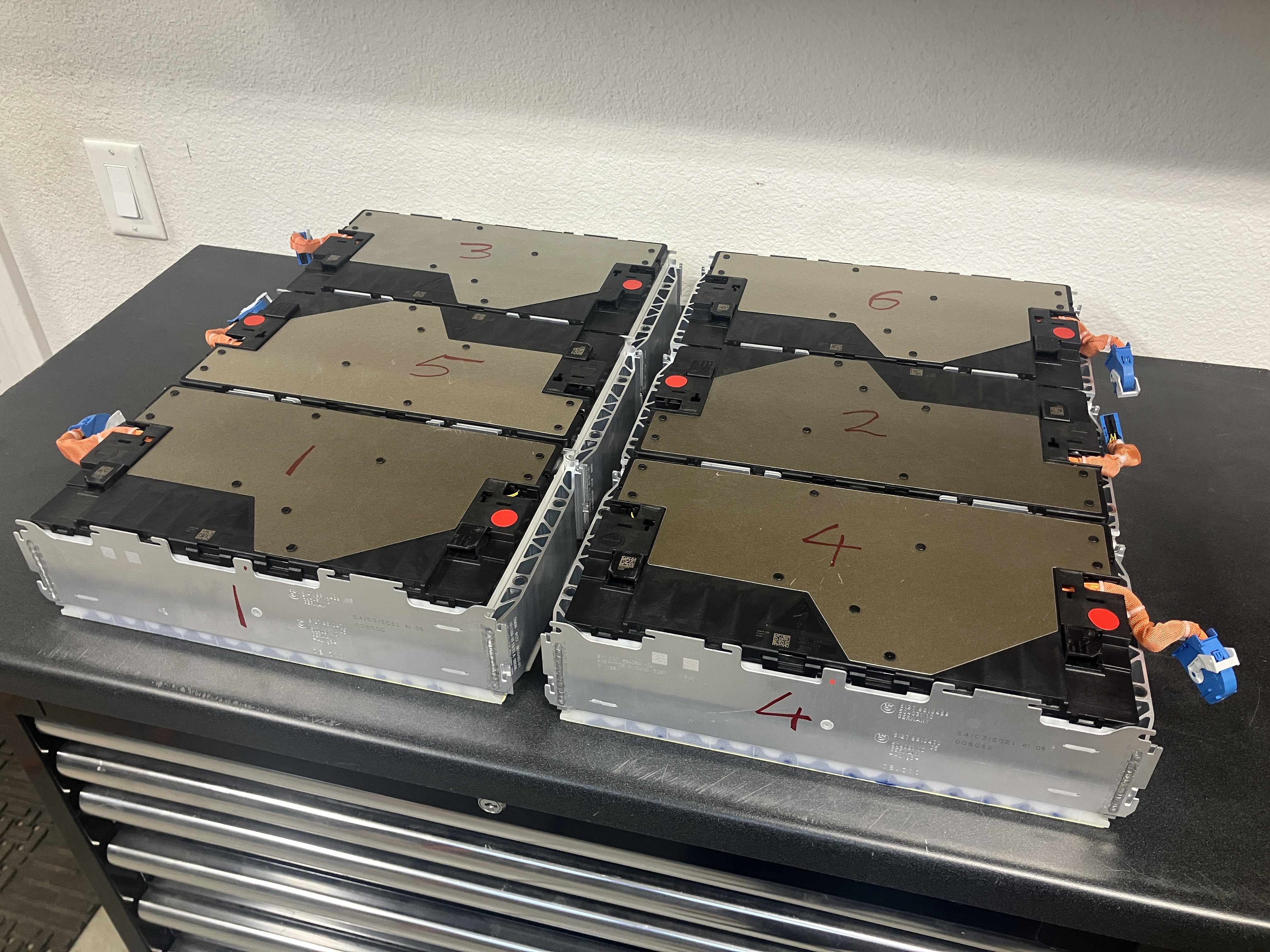 here are the six modules from one of the two BMW 530e (circa July 2019-present) 12 kWh battery packs in their native Mayan pyramid formation