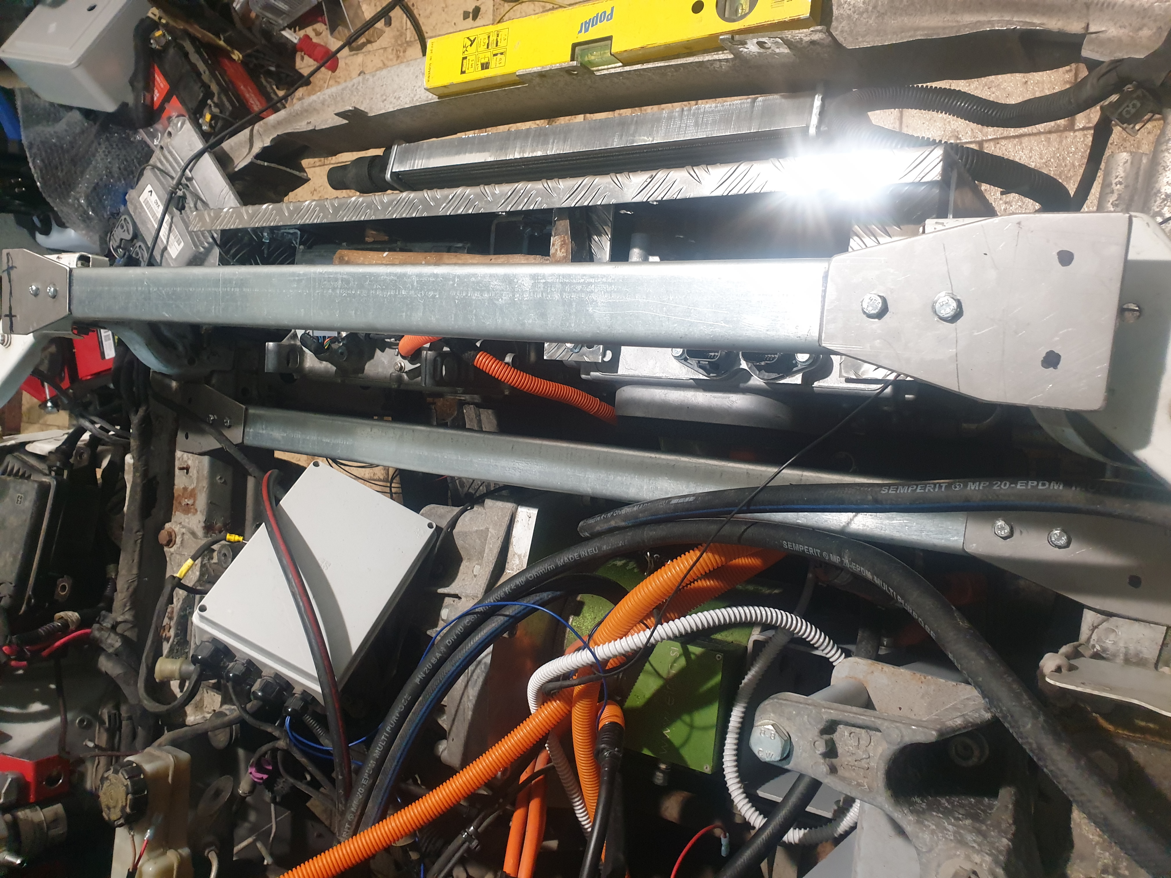 Under the box i prepared two C crossmembers with 3mm inox mounts.