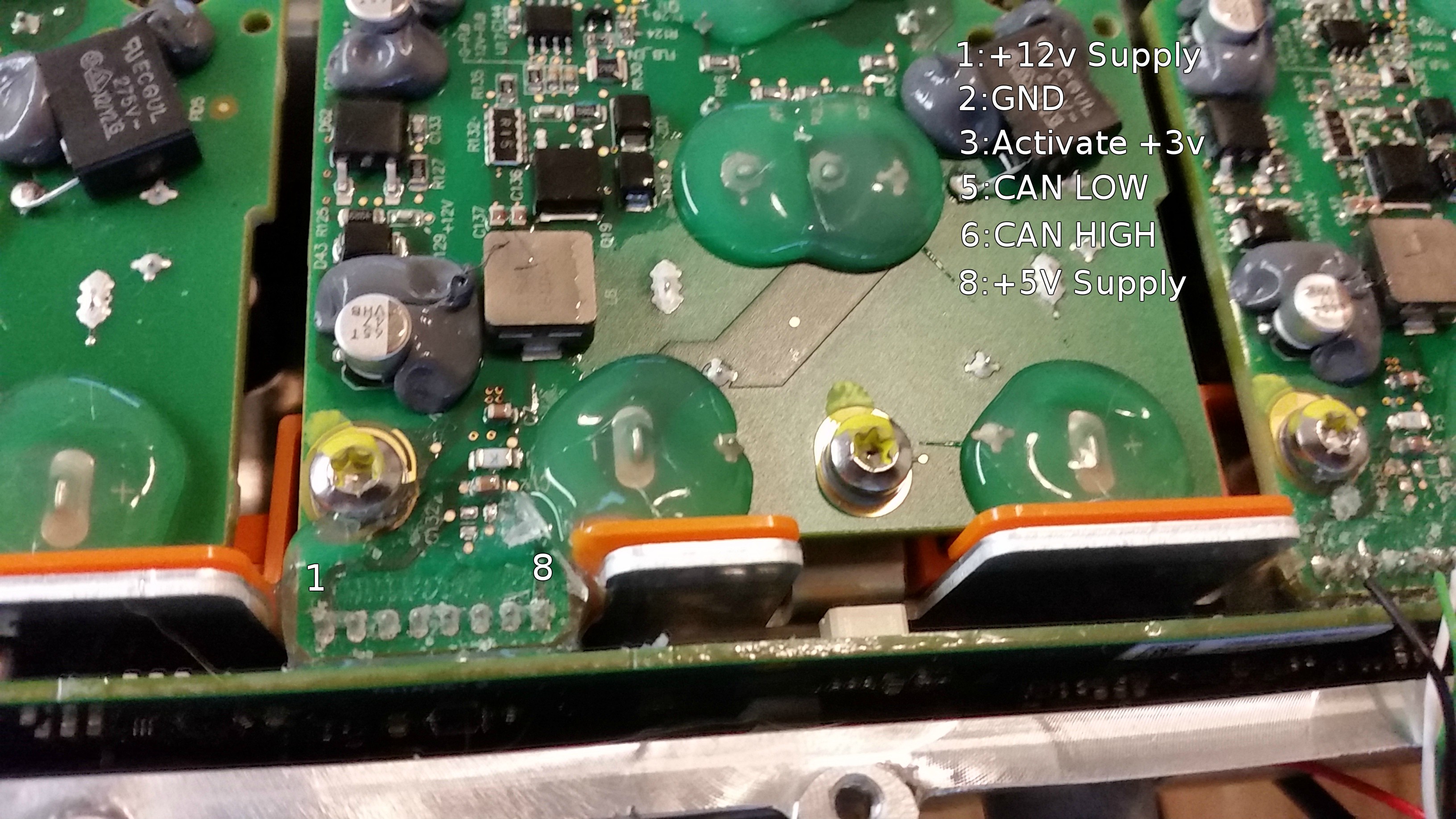 I tried bringing the enable pin high and proximity pin low and saw the changes detected in the spot values, but still nothing on the modules. I did solder the CAN termination resistor and even tried a second resistor at the molex plug since some people were saying the single R120 was causing problems. Also probed the pins on the surface mount connector and didn't find any bridged pins. Checked continuity from pins to nearby vias where possible and all seemed ok.