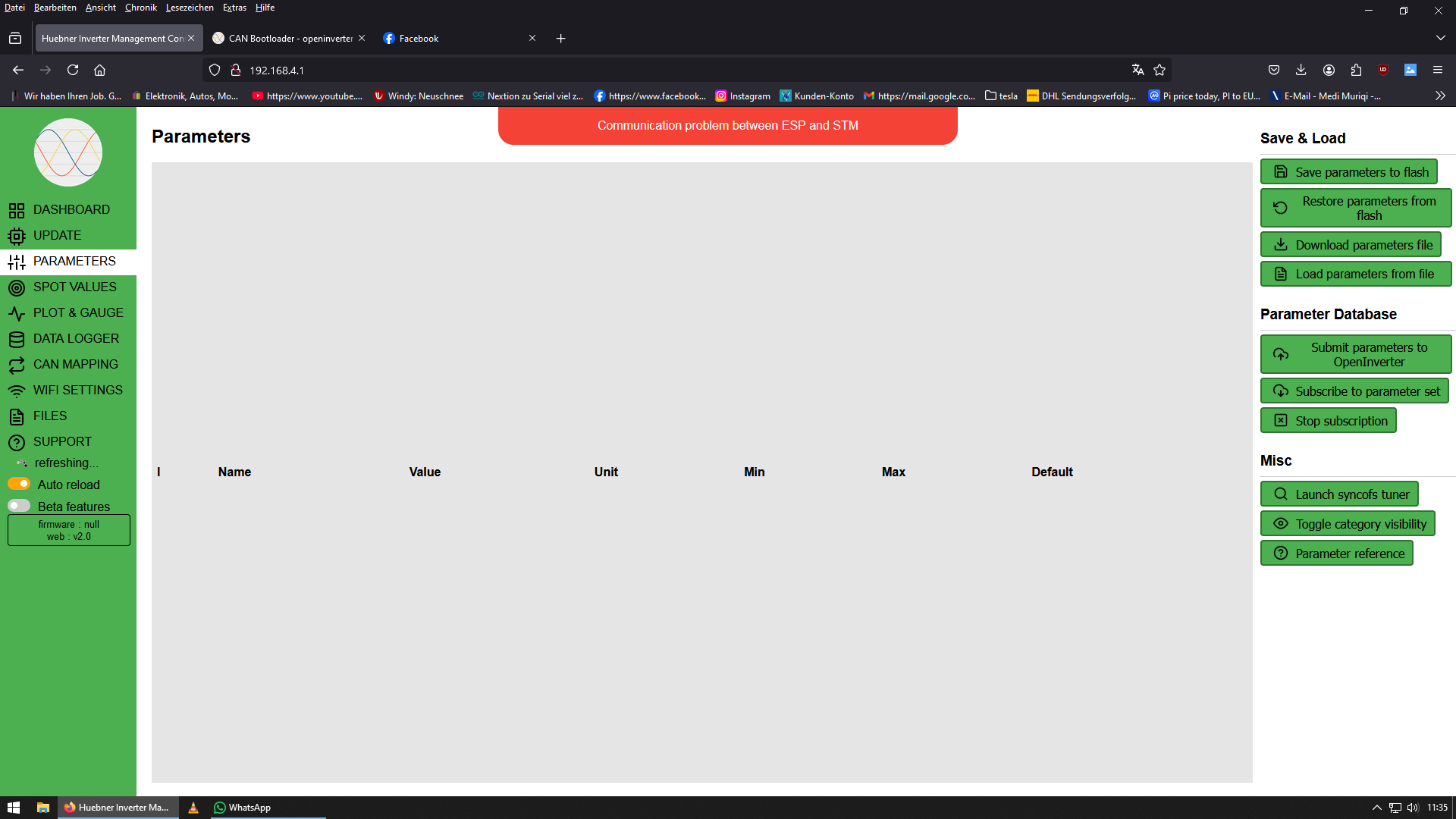 The latter can be improved by running the latest firmware that you find on github. I'm assuming ESP8266 https://github.com/jsphuebner/esp8266-web-interface