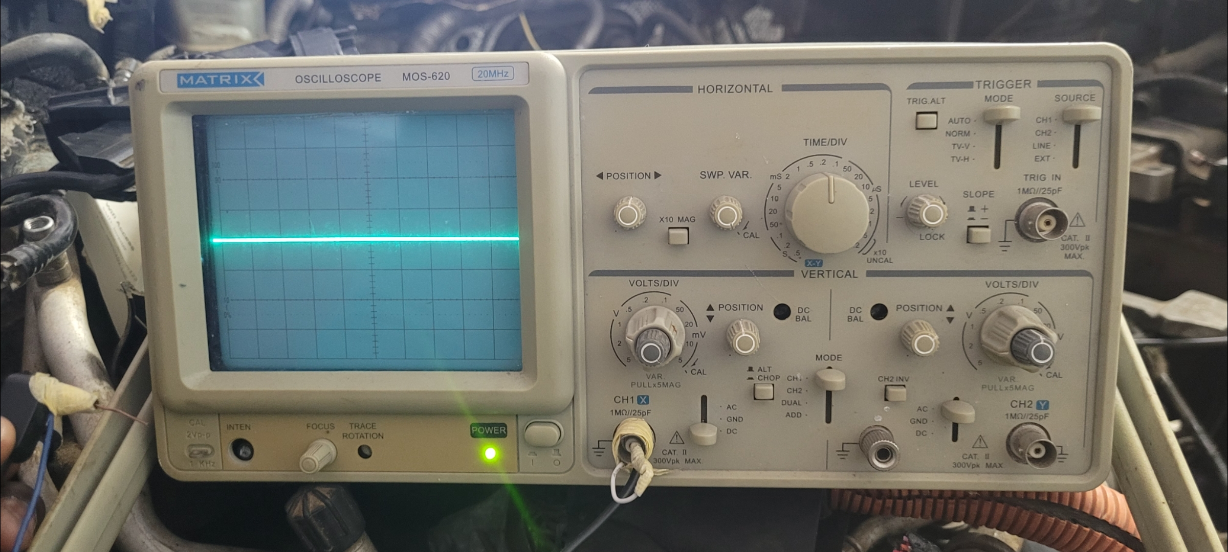 Next I turn on the inverter and the vcu I tested pins 28 29 and 30 before logging in the web Interface, a noise pattern showed up on the scope.