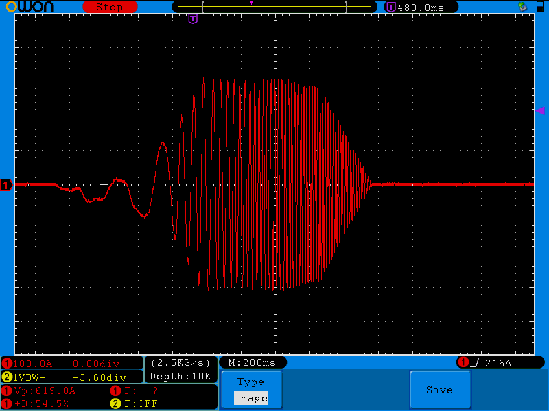 This signal confirms the current clamp measurements. There is no overcurrent.