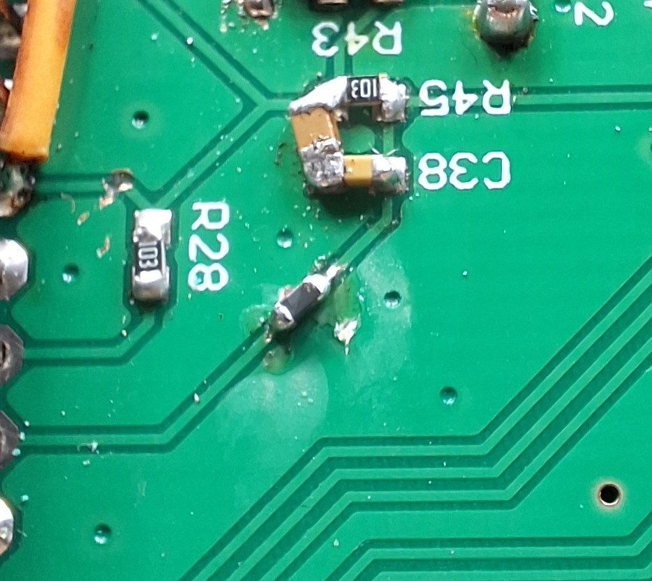 Have tried adding a capacitor before the voltage divider/input filter (as on the first picture). That didn't do much.