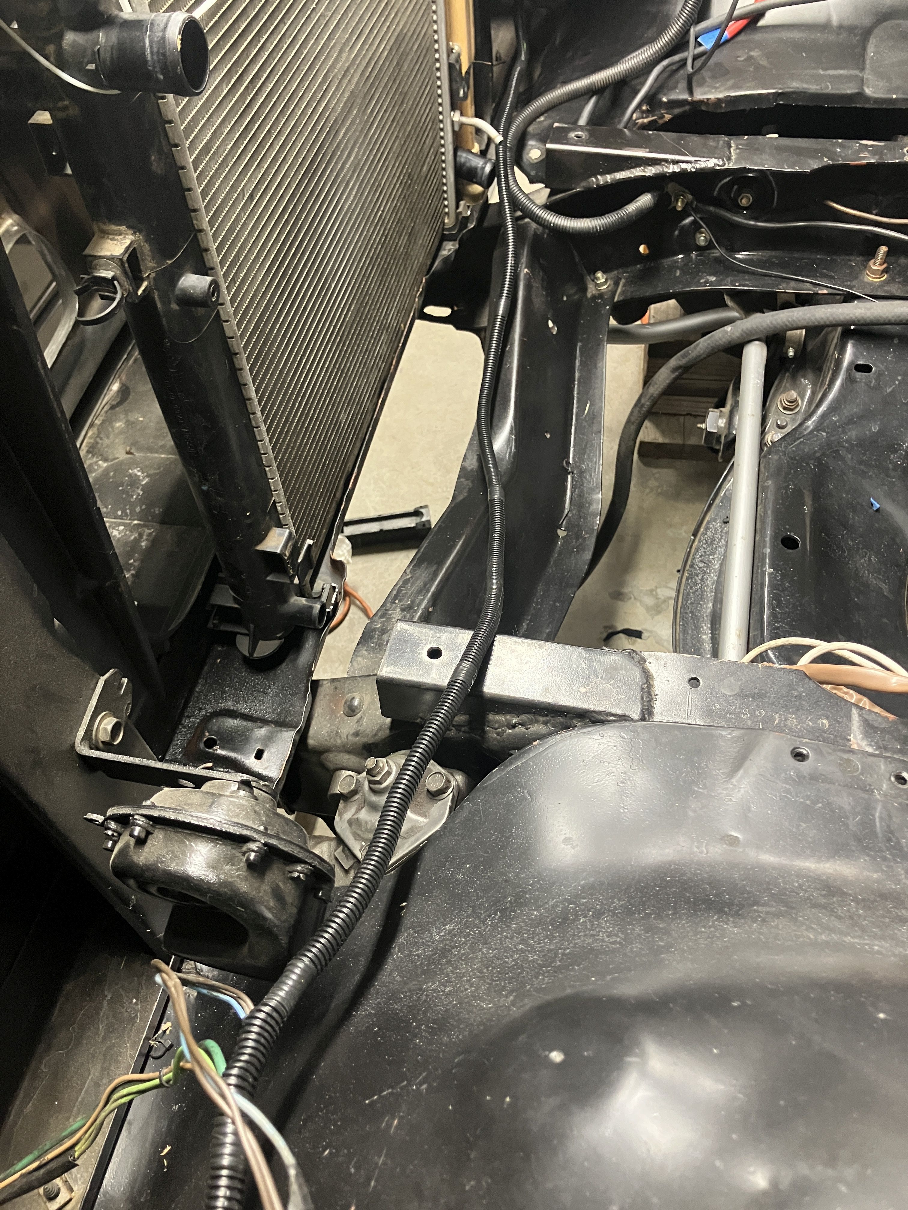 so it all started with me wanting to relocate the water pump which then led me to this, replacing the radiator, and I did this for a couple reasons, first I got tired or using many reducer hoses to step down from like 1 1/2 inches down to 3/4 for the Tesla water pump and even further down to 5/8ths for the inverter, and transmission