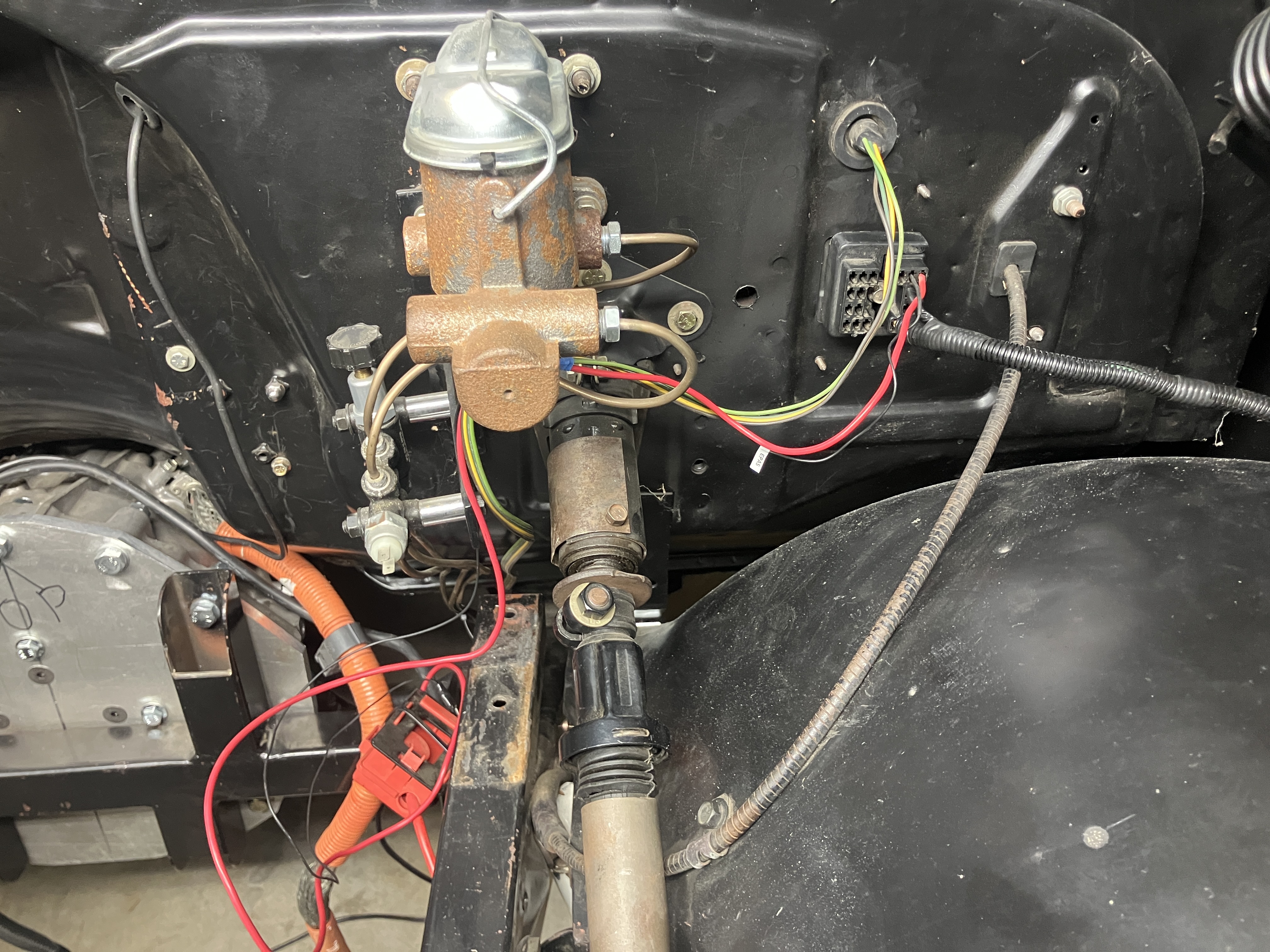 I swear there's a wire mess every where I look, that green and yellow wire bundle is the stock rear lights harness, and all I really have going to the OEM bulkhead (everything else was engine related and has been deleted) is the red wire which supplies main 12v power to the OEM fuse box in the cockpit, the tiny black wire is the signal for the Prius EPAS Electronic Power Ass. Steering, this should get cleaned up tonight, so that my brain can function and not be distracted