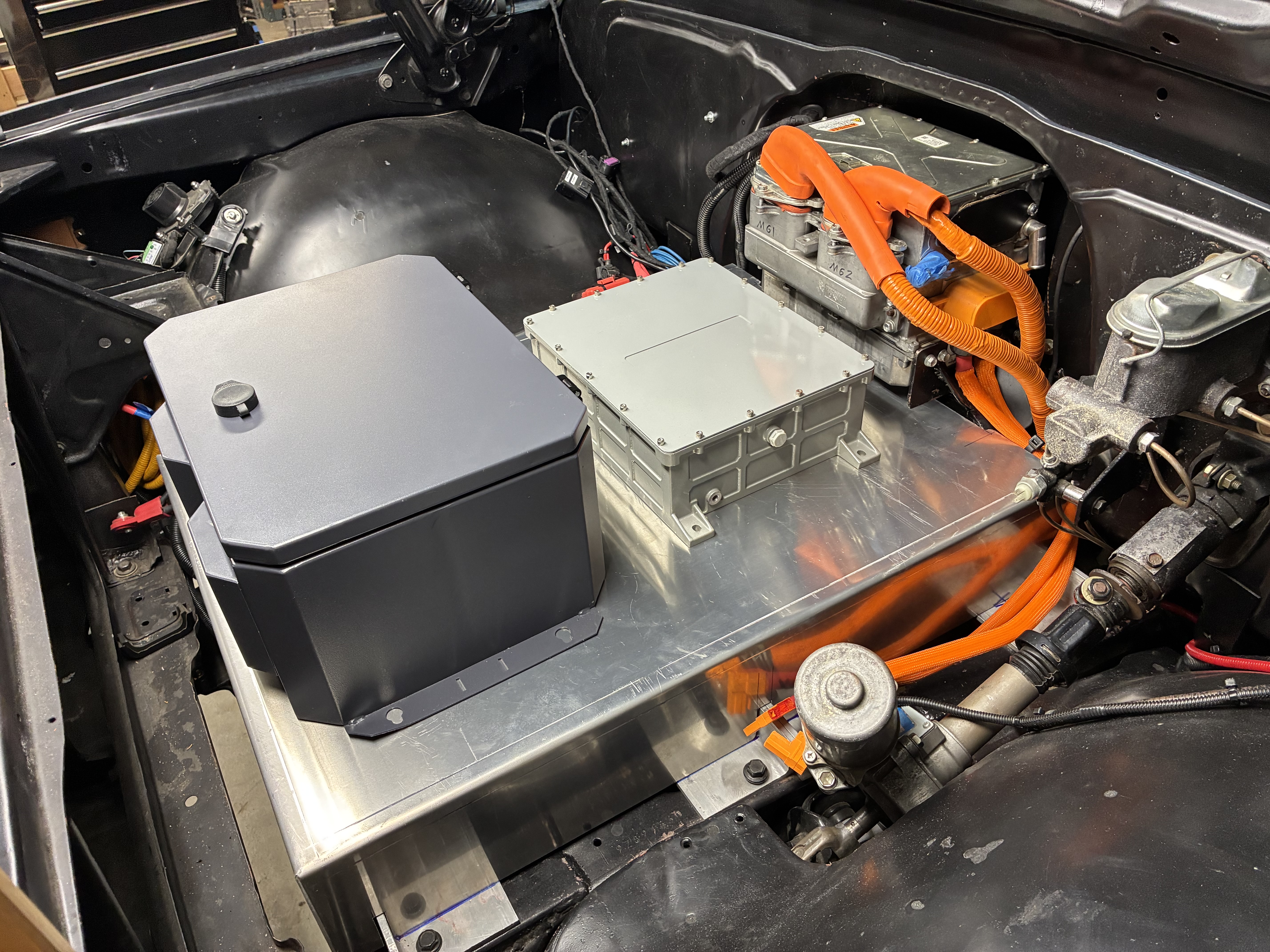 and above it in the middle(ish) is it's older sibling first gen Chevy Volt battery charger