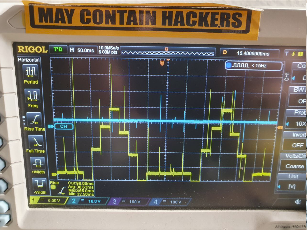 At 10Vpp noise battery tap looks like shit, gate gets noisier, but BMS keeps chugging along, ADC still shows normal values.