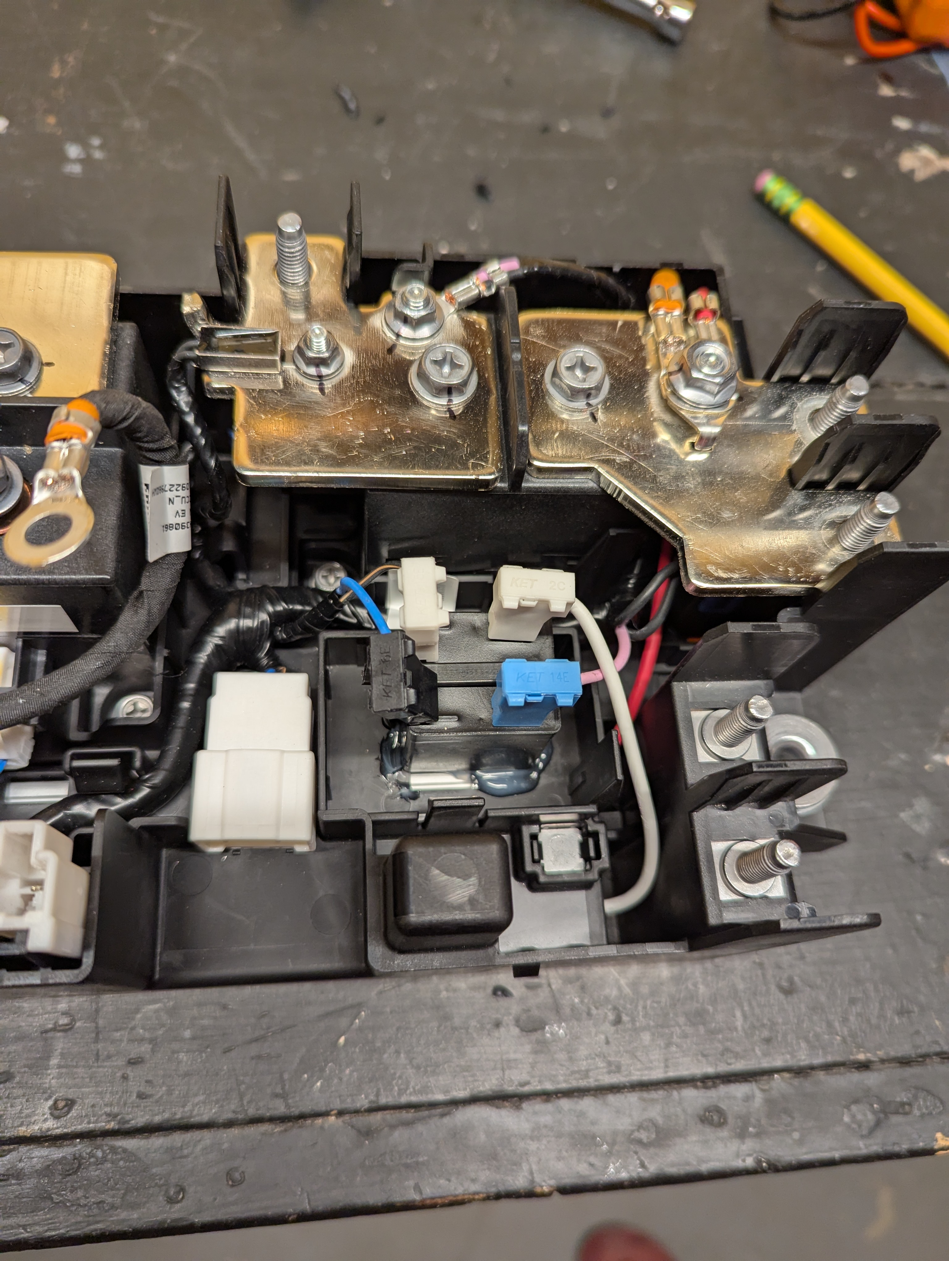 Using the hyundai/kia power relay assembly aka contactor box has one challenge (so far): The relay is not a relay it is actually a FET or something, and my electrical engineer friend and i have a hunch that it requires 800v to operate. I ordered a 400v relay (Panasonic AECN11012) to replace it. It clicks with 12V applied which the previous "relay" did not do! Pics of the mods to install the new relay are below.