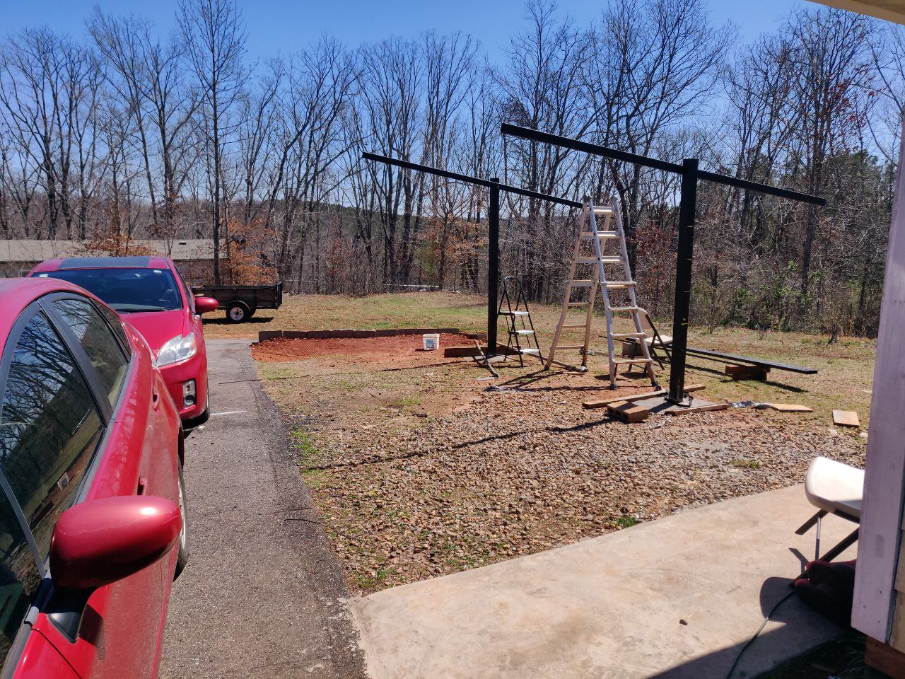I built this solar carport for $1080 and was a lot of work. The metal poles are 4ft in the ground in concrete.