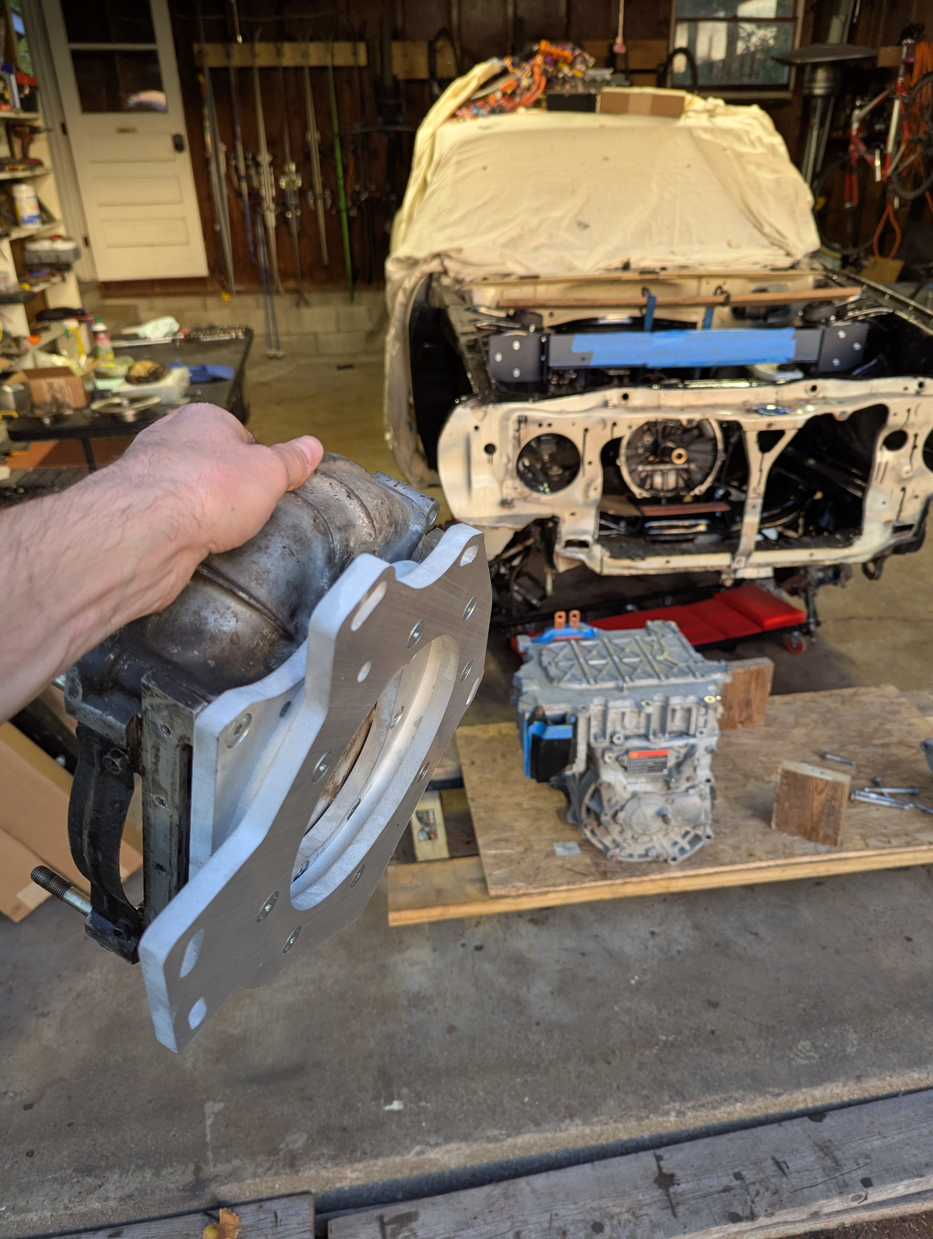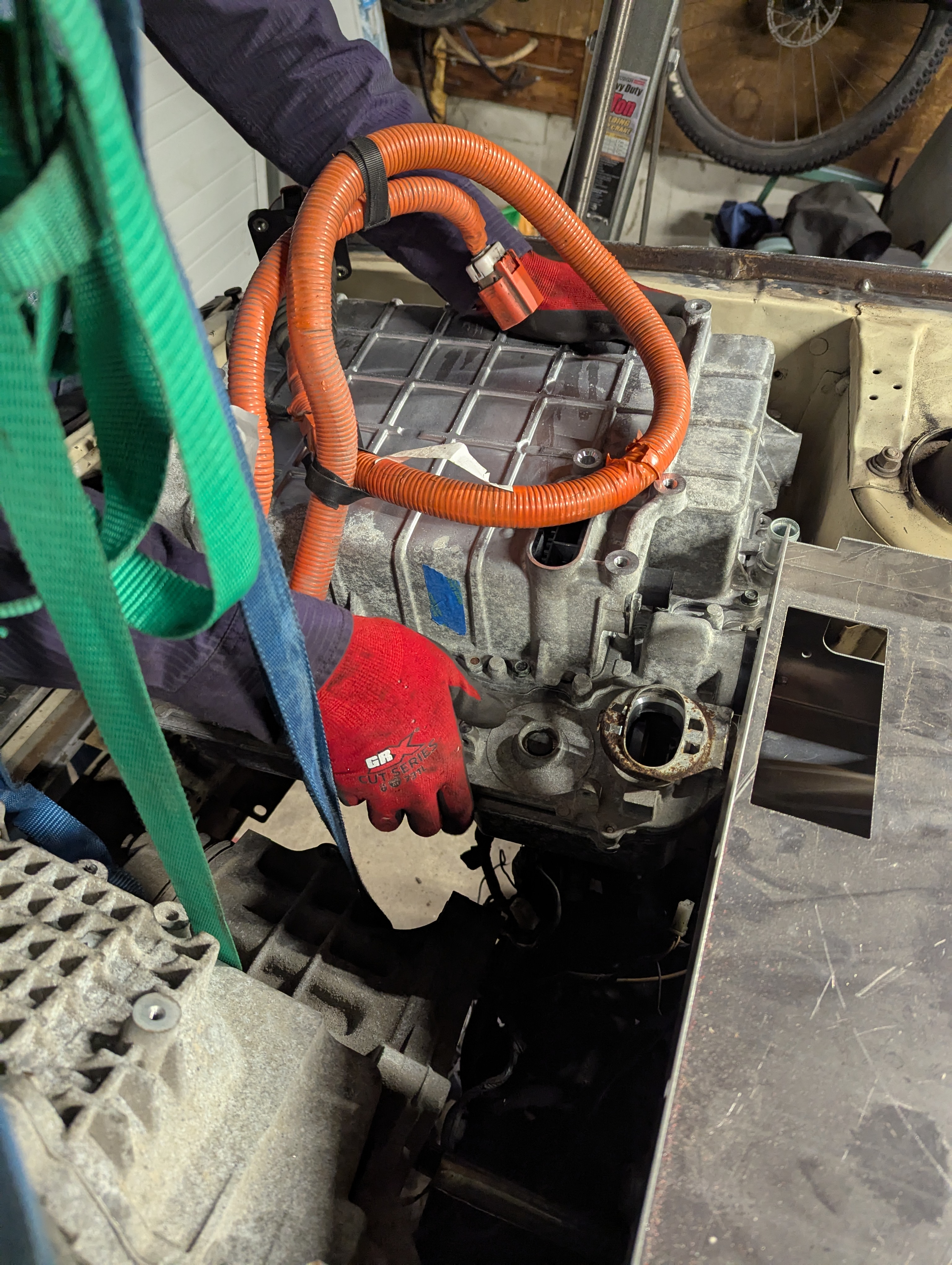 I haven't found any other conversions with the leaf motor tipped over like this. and tipping it this way puts the coolant ports at the bottom, which creates the possibility of bubbles trapped in the cooling channels in the inverter. i'm willing to take on this risk and monitor inverter and motor temps, and if there's a problem i'll replace the PDM with a smaller DCDC and OBC so i can rotate the motor back to vertical.