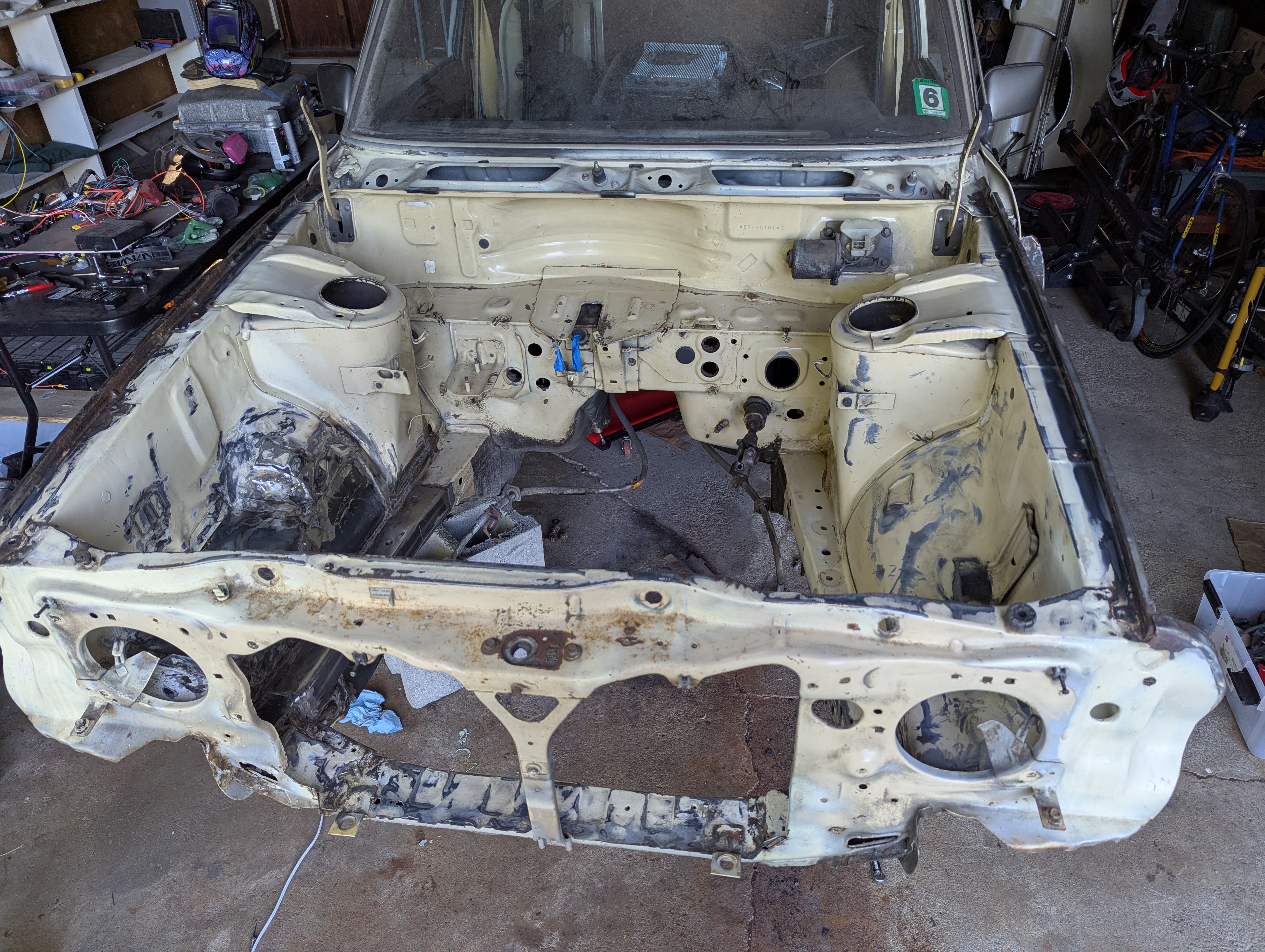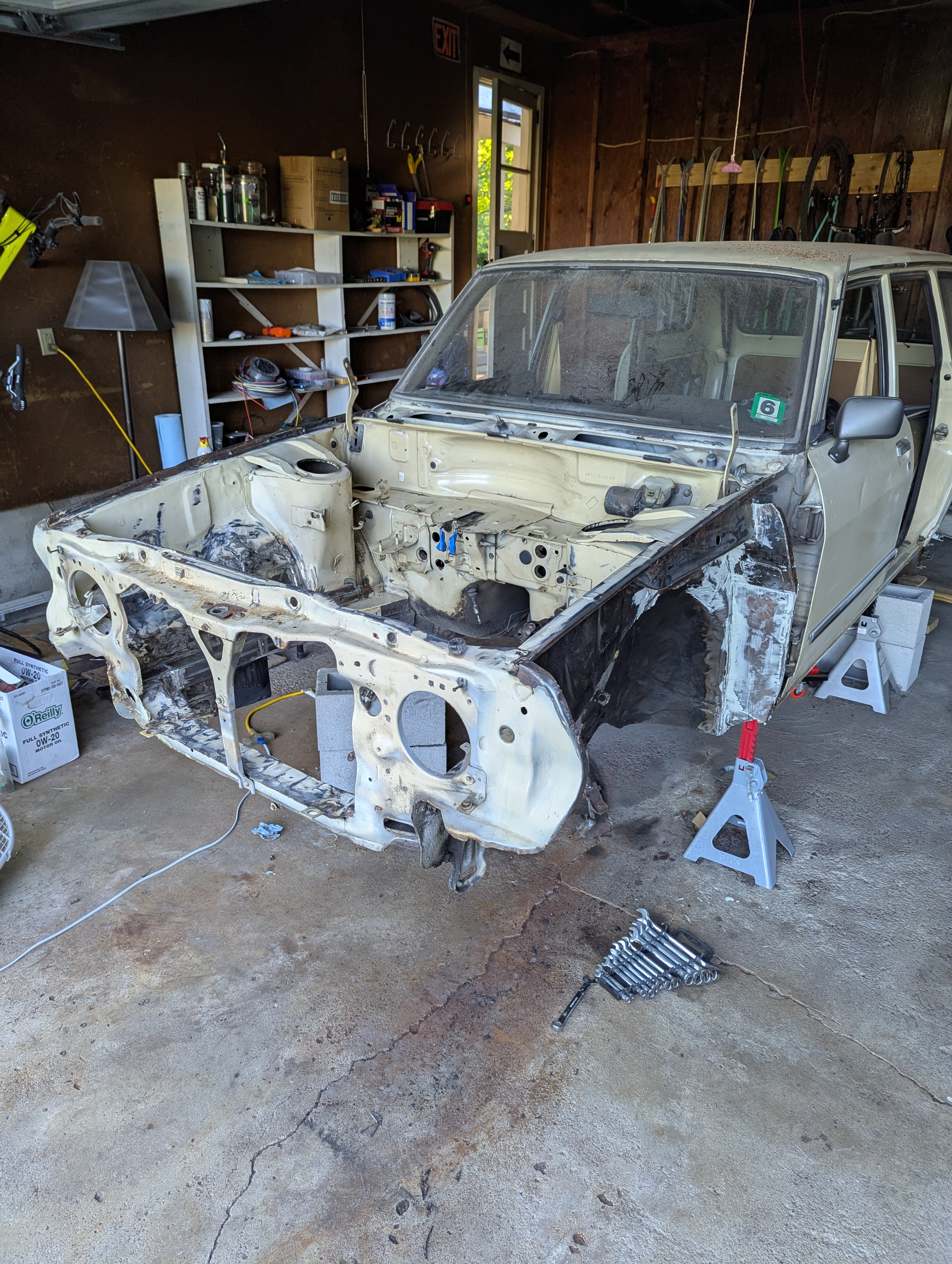 I have been spending less time on conversion and more time on restoration lately, with some big rust patches as well as evidence of an old collision discovered :?