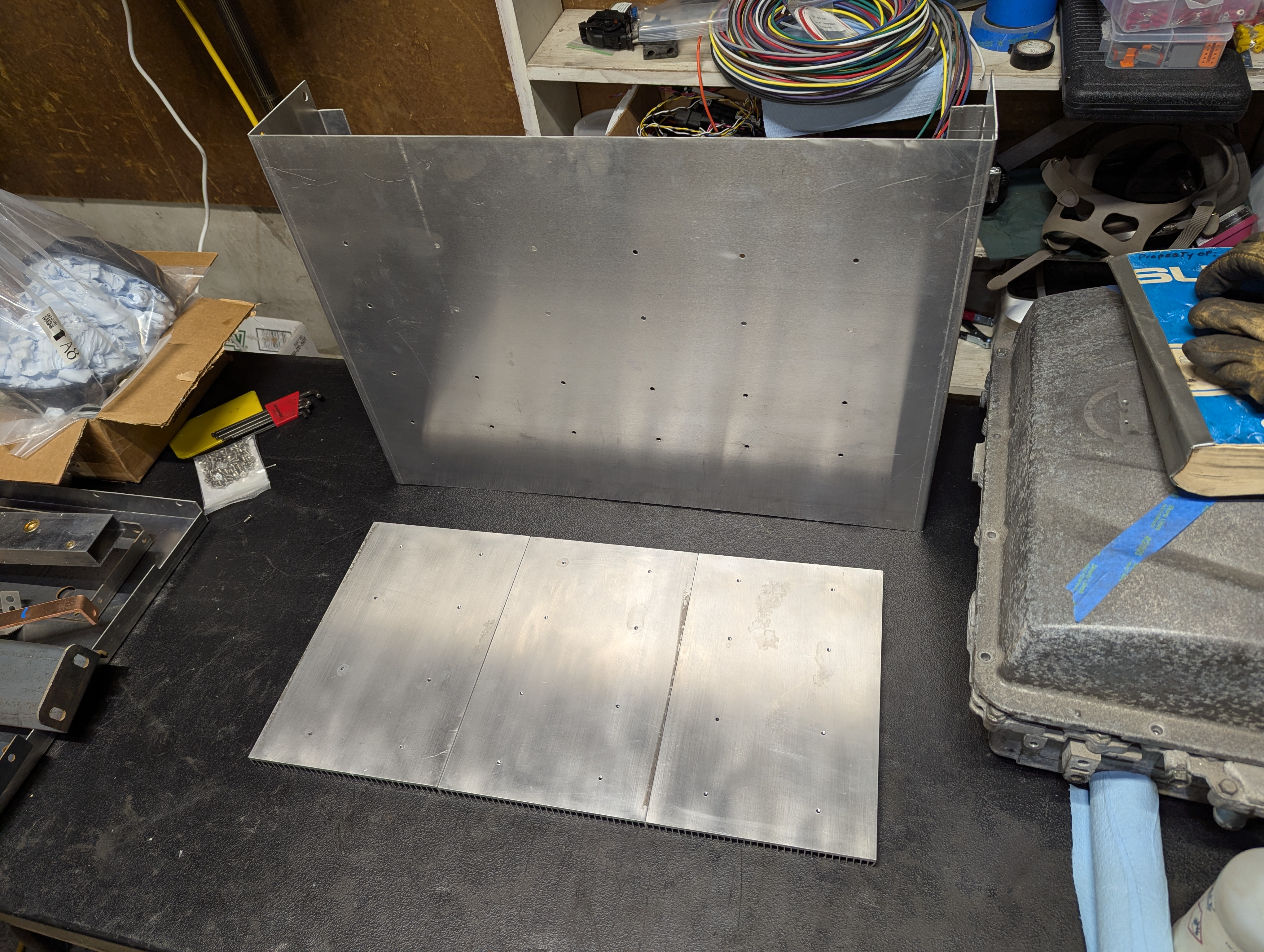 my front battery box will be made once the waterjet at work gets repaired. i had to redesign it to house the hyundai CMU and make easier battery connections. also got a plastic box from polycase that will be an HVJB appendage to the battery enclosure since i can't make the battery enclosure big enough to house the HVJB components.