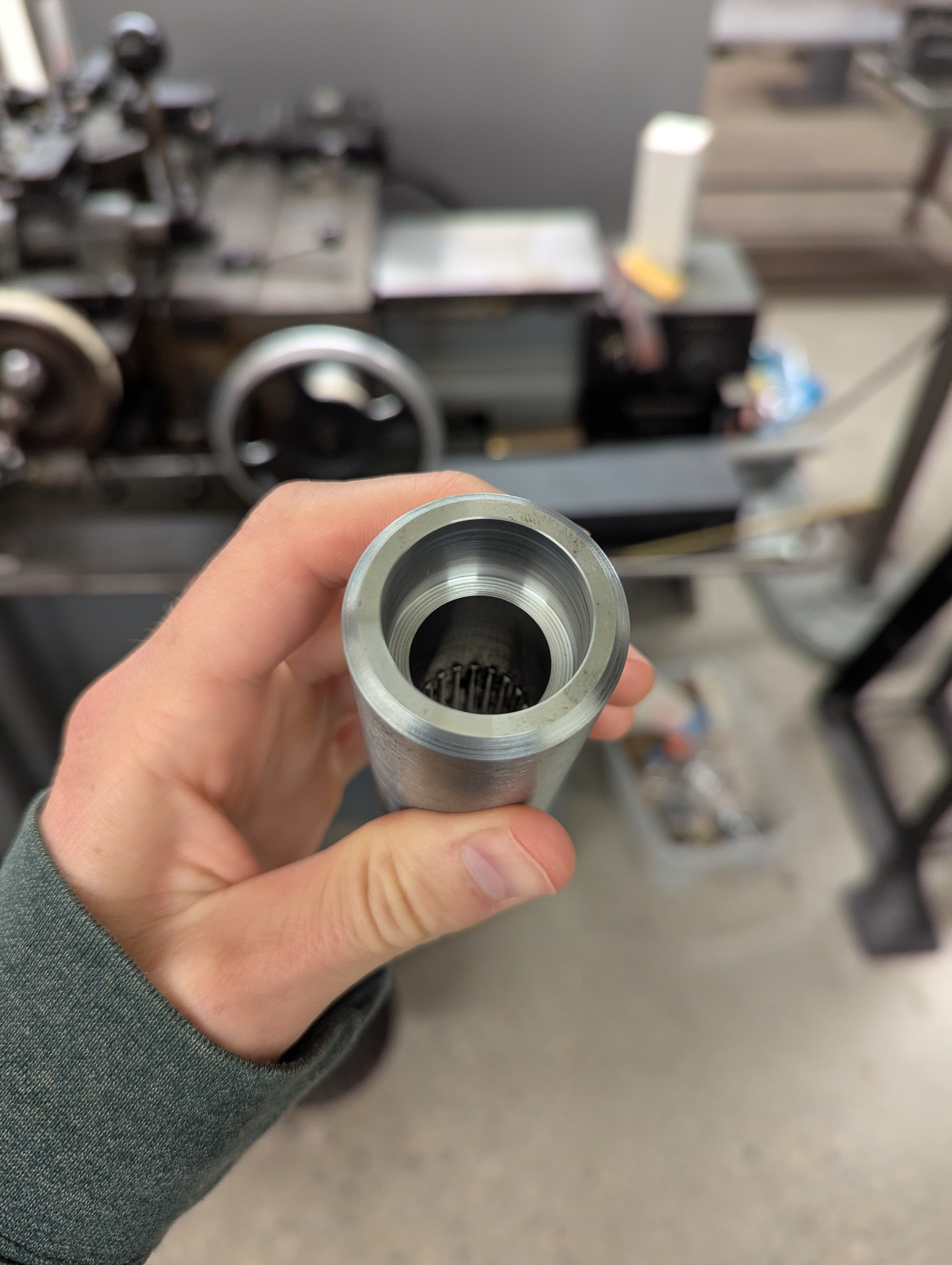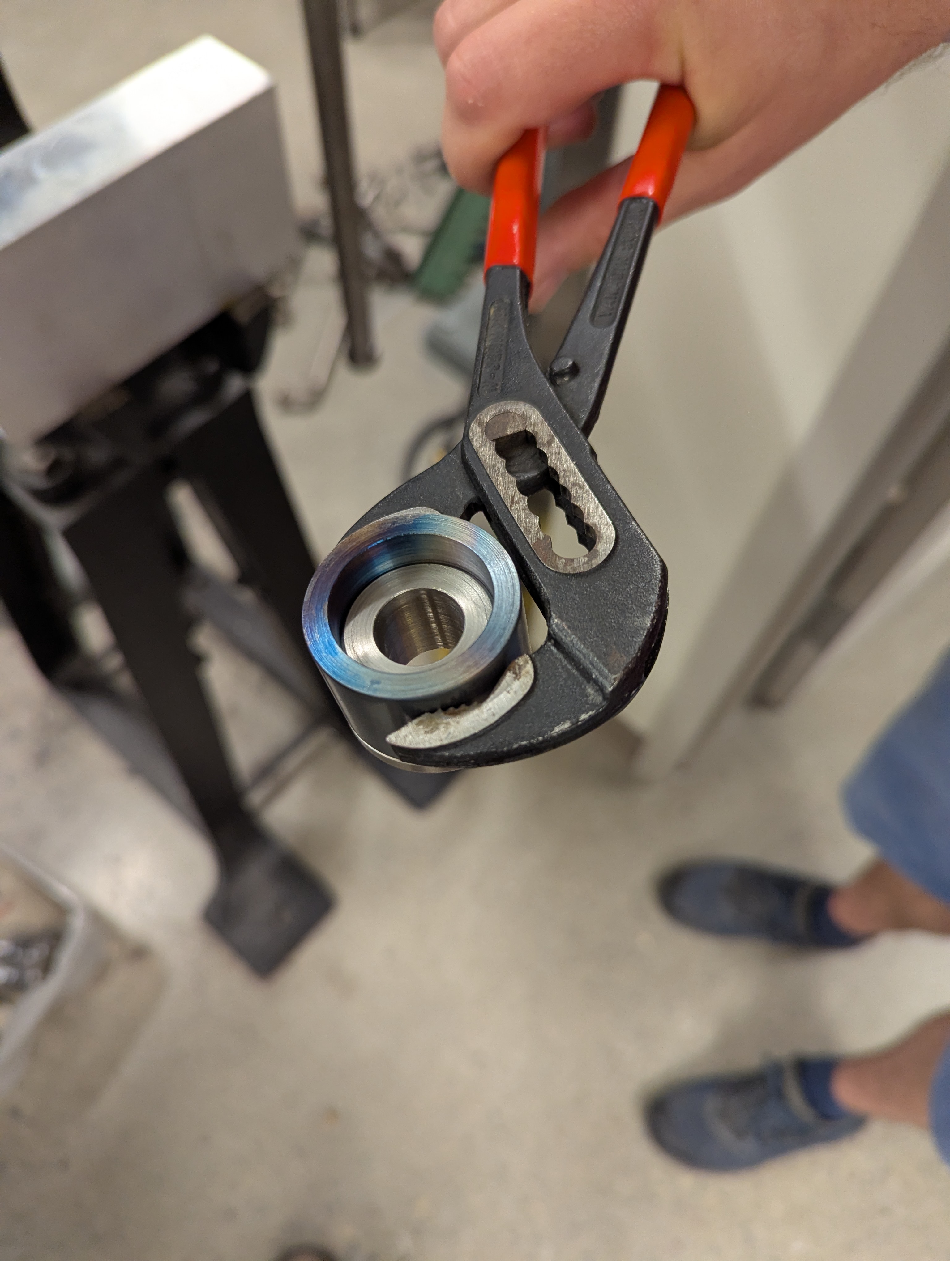 got my motor coupler welded by a friend of a coworker and it looks like he did a great job. bringing that back to the machine shop to trim off the lumps so it's closer to balanced while spinning at 1 million RPM.