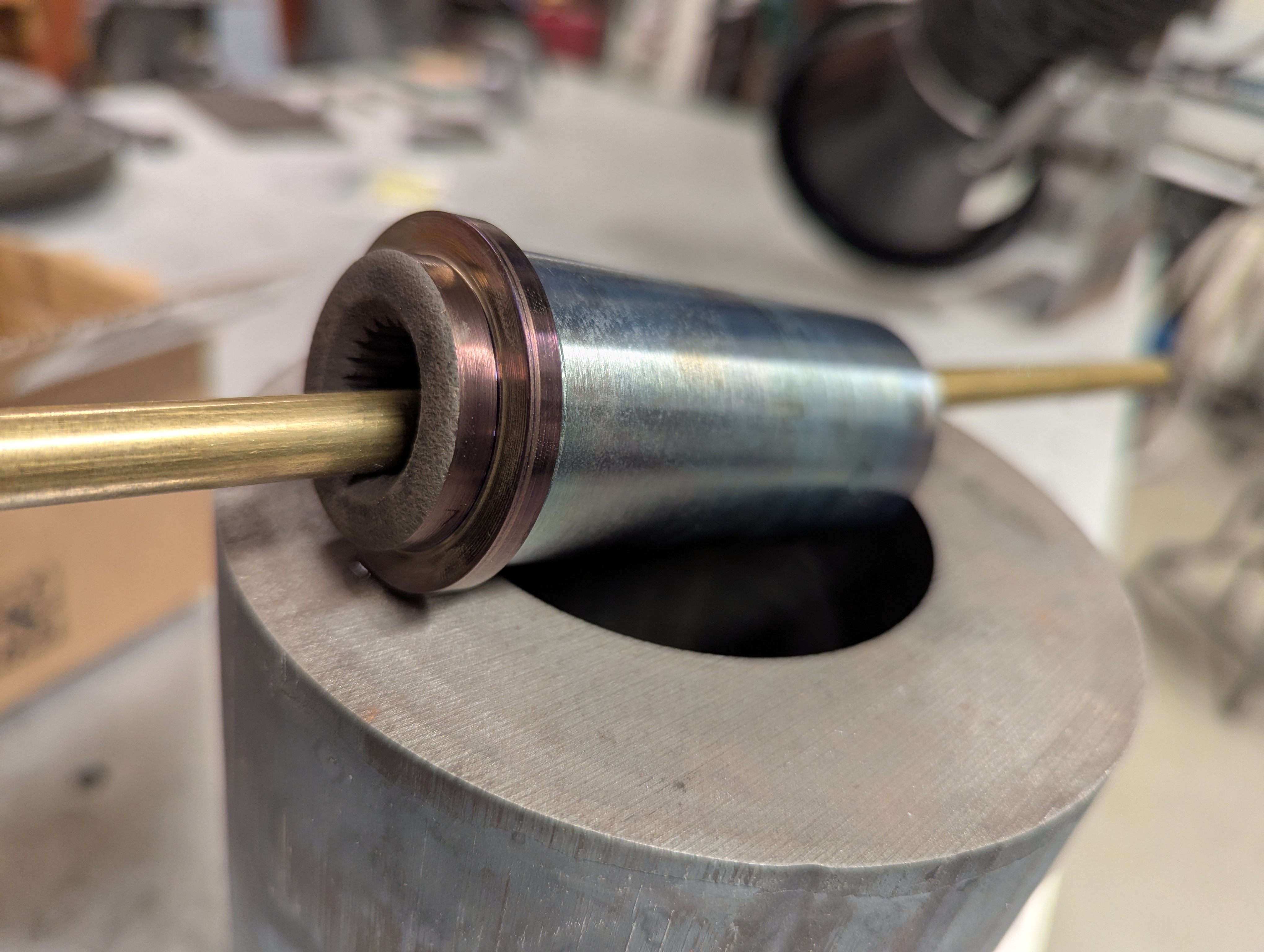 I also visited my friend at the University of VT machine shop where we did a shrink fit for the motor coupler on some practice steel stock and it was suuuuper satisfying! heading back again tonight to hopefully do the real thing! Bratitude, did you learn what steel old subaru splines is made of and did you take any precautions against accidentally heat treating the splines while welding?