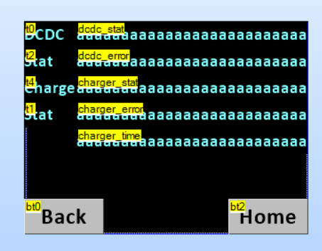 To keep it clean, for the main screen I just display the motor direction, speed and vehicle state - (drive, charge, error) and error pop-ups. Ex. motor temp H (warm)/yellow, HH (hot)/red. Then I have separate details screen for all my hardwares - motor details, battery details, ibooster details, charger details, etc.