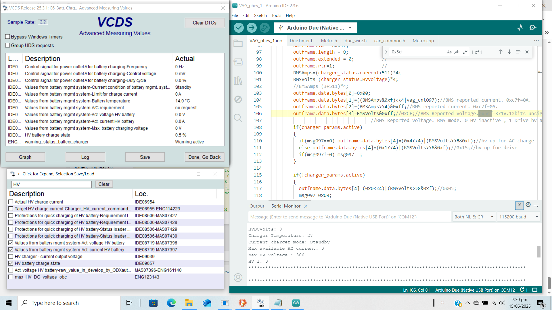 I'm now comparing e-tron sketch, gte log & phev.ino code to find additional values using vcds.