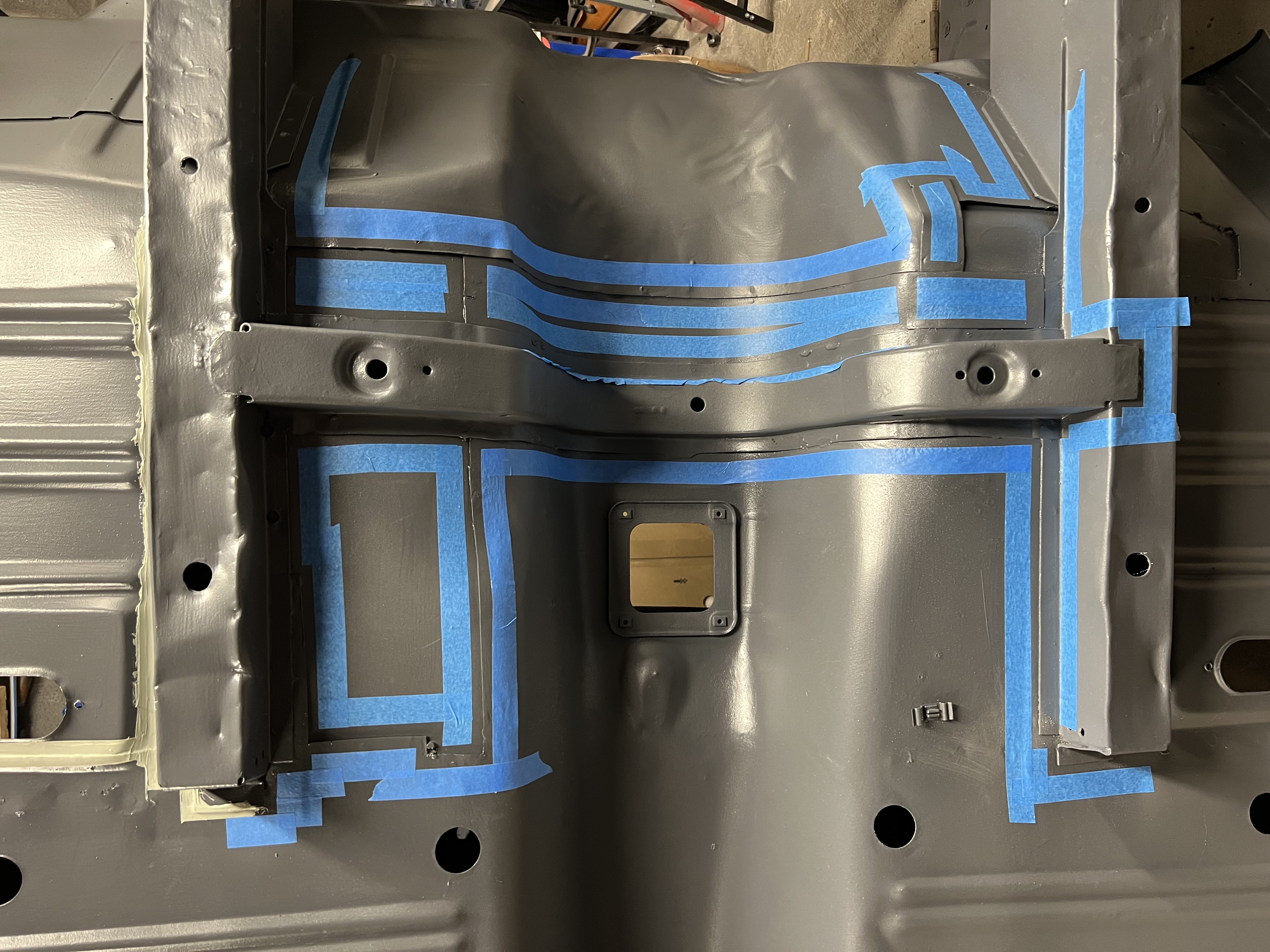 I wasn’t sure how I was going to finish off the underside. To be honest, I sort of made it up as I went along. I knew, at least, that I would be topping the zinc primer with a two part epoxy paint. That seems like the standard way to go. I then opted to run seam sealer over the paint. But somehow I ended up buying white seam sealer and that looked a bit odd against the grey epoxy. It’s all on the underside so it should massively matter, but, in the end I decided to go ahead and shutz the whole bottom of the car to finish. I’ll get an extra layer of protection out of it and it makes it all the same consistent colour.