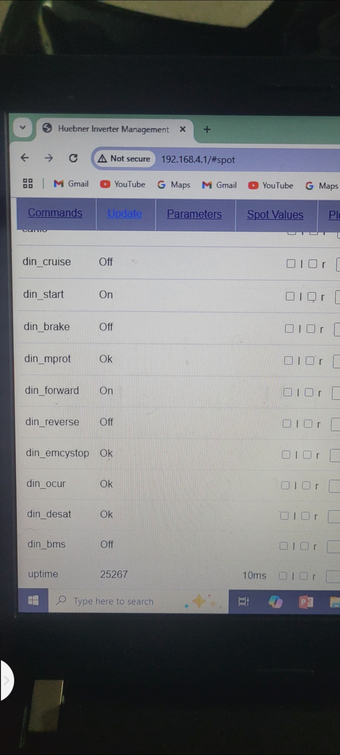 I went on to connect the throttle pedal also with the discussed instructions on the screenshot below and tested with both the resolver and the pedal connected. Now the light bulbs didn't turn on and the inverter didn't go to Runmode it stay off even after setting udcsw to 0. While on previous tests I set udcsw to 0 because that was the only way I could get the inverter to go Runmode because even with manual start turned on, the inverter would still be on opmode> OFF.