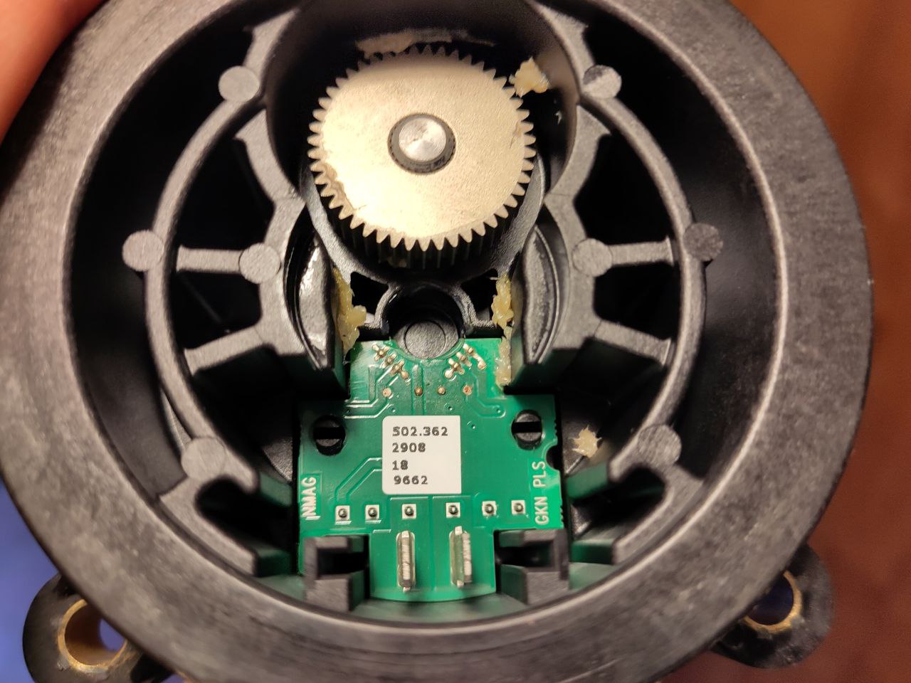 The parking pawl motor saga continues. It remained locked basically every time I went to start the vehicle, which annoyed me very much. So I removed it from the vehicle (to unlock the parking pawl, the motor has to compress a spring, so it should be in the completely locked position for removing it) and opened it up, being careful to not let any dust/dirt/debris get into the motor or into the gearbox.