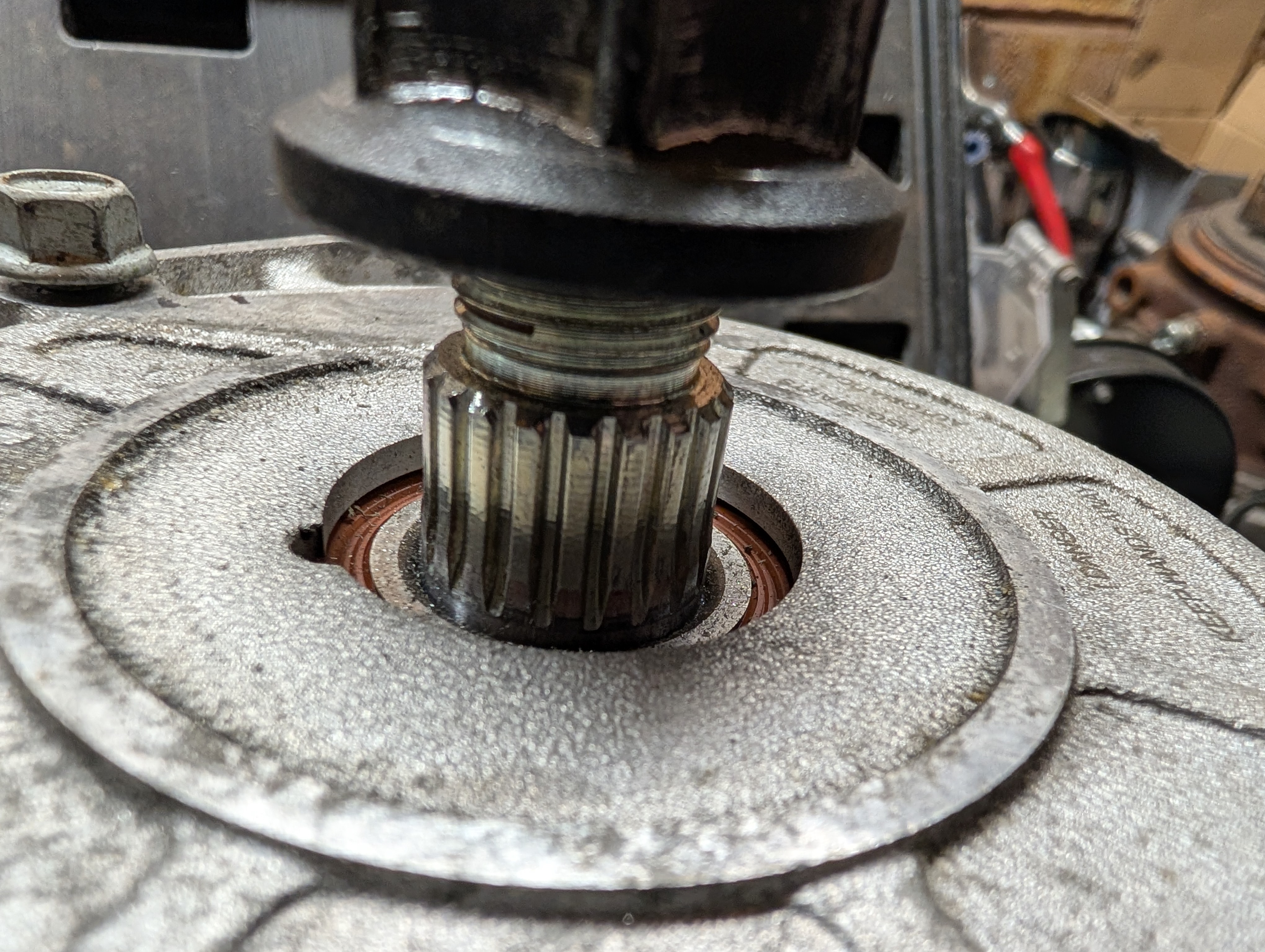 Need to sort driveshaft. it seems a bearing failed and then the shaft started spinning inside the bearing and ate away over a mm of shaft diameter. current plan is weld it up then grind it back concentric. if that doesn't work then new shaft.
