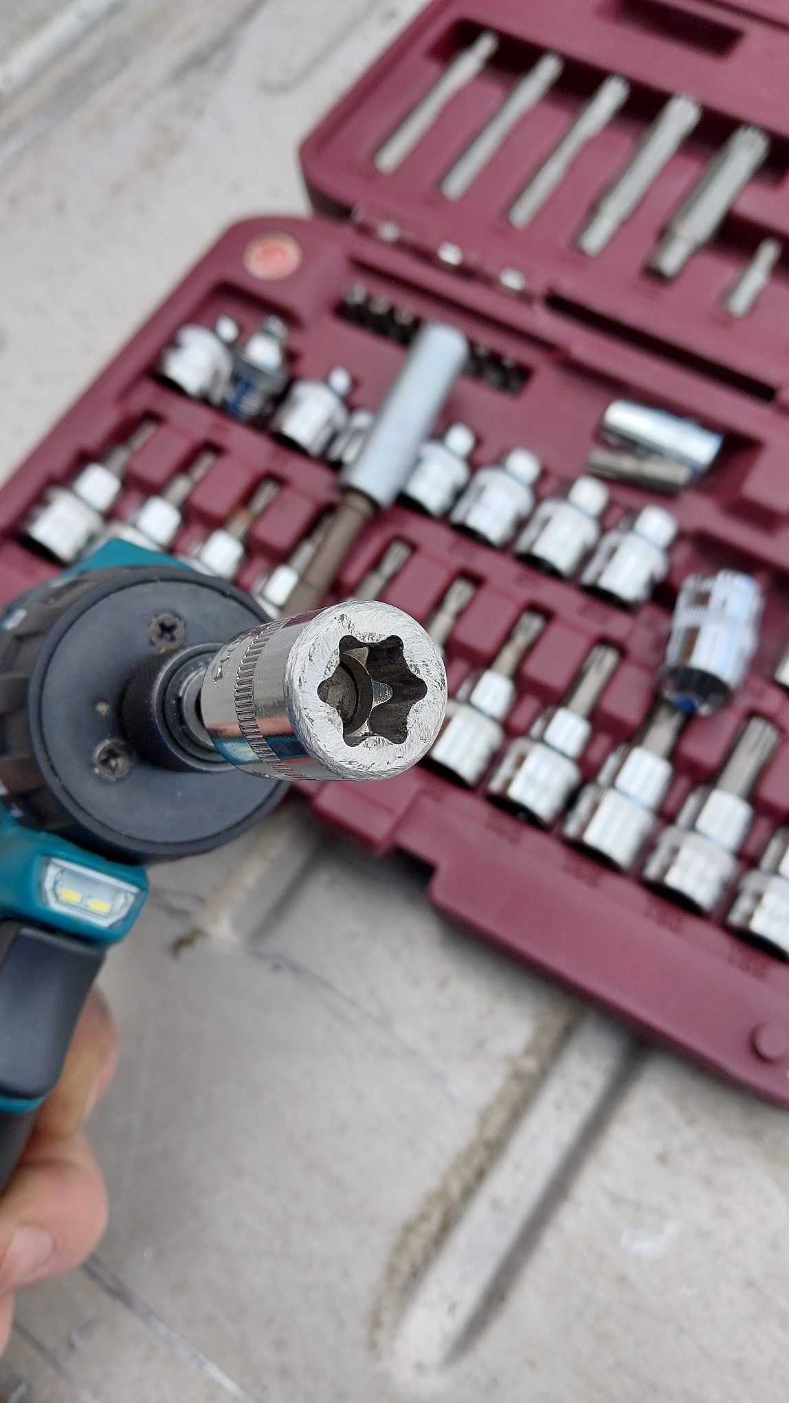 So I made a sandwich and flipped the battery, first there is a cover plate, with a 'sharpened' E16 bit I was able to remove the security / one way screws.
