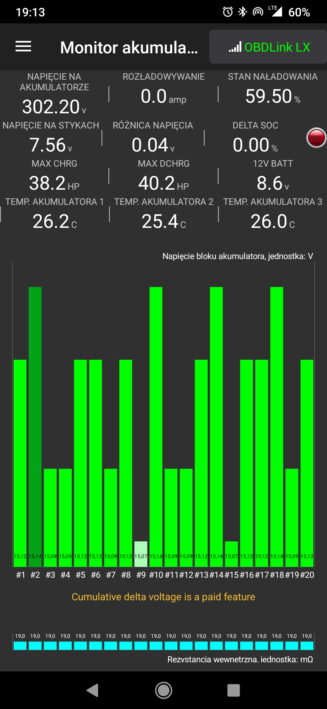this is my first test, driving out, voltage block 11 looks to be .2 volts lower at times then the rest, so i will charge up the battery by holding the pedals and then see what the difference is at the cell level, by removing the battery and taking off the top and bottom and if one cell is found very off then it gets charged and we will repeat. for now