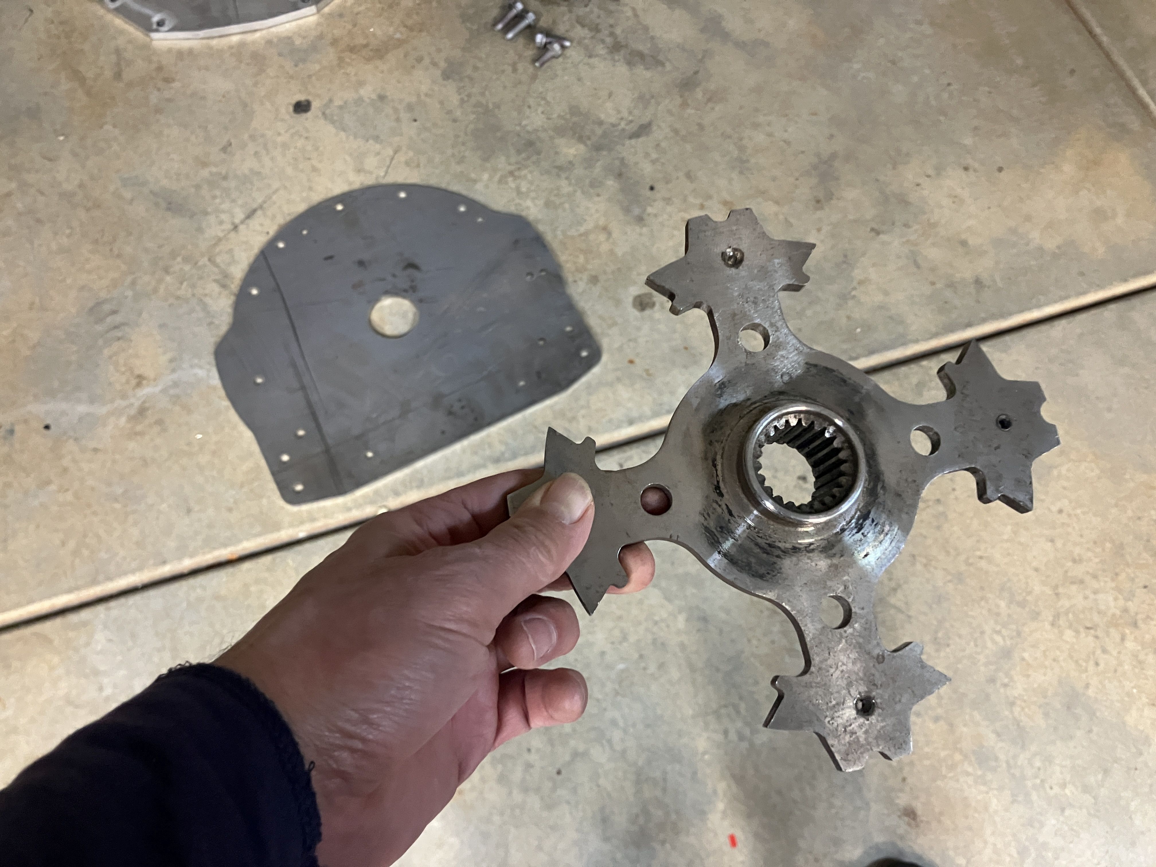 ah good point(s) and yes I agree, some holes had to be enlarged a smidgeon like the very bottom two, it's all in the excruciating boring video above, and I plan on using the tension pins to align and drill all the holes in the fly wheel pressure plate ninja star to lock the input shaft, then mount the plate without the tension pinsjrbe wrote: ↑Sat Dec 07, 2024 4:31 pm How well does the plate align?