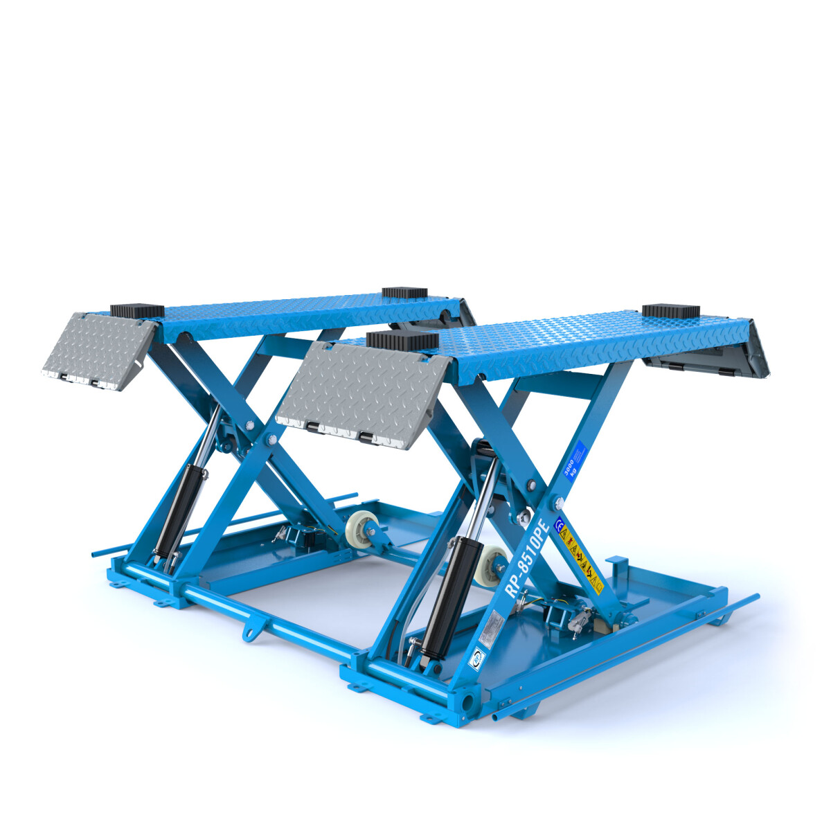 I have something similar in a Chinese version. It's heavy, but can still be rolled away. The advantage is that the middle of the car is free underneath. It lifts about 1 m and costs just under €2,000.