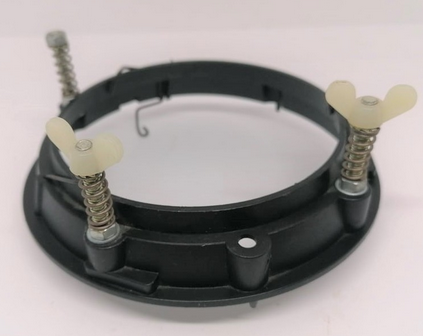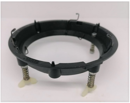The spring presses against the back of the headlamp pod housing/moulding with a hole drilled through it for each bolt. - the wing nut and a spring locking washer is on the other side (engine bay side).